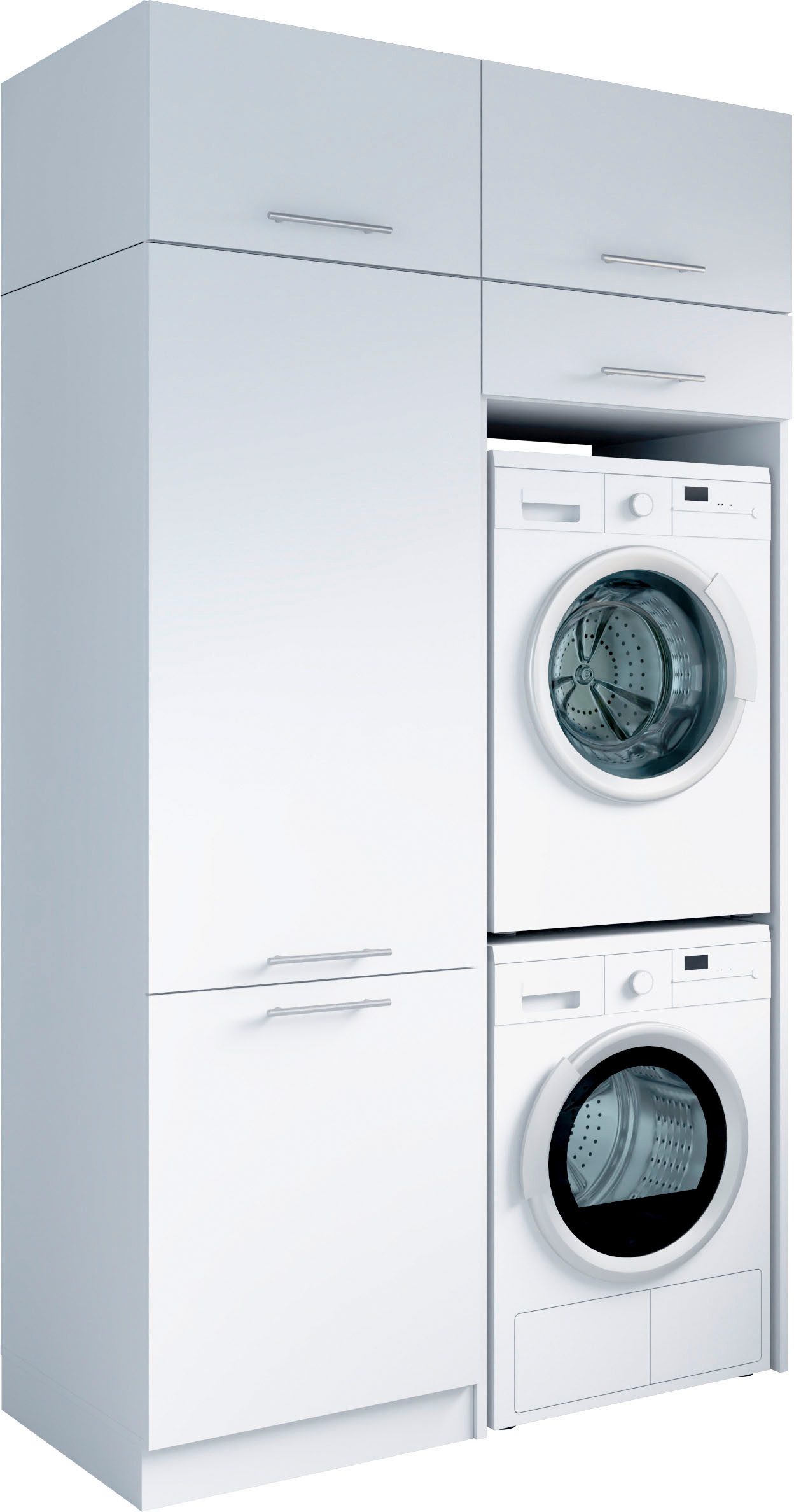 Lieferumfang | 1x Kühlumbauschrank 1x Waschmaschinenschrank 2x Aufsatzschränke |