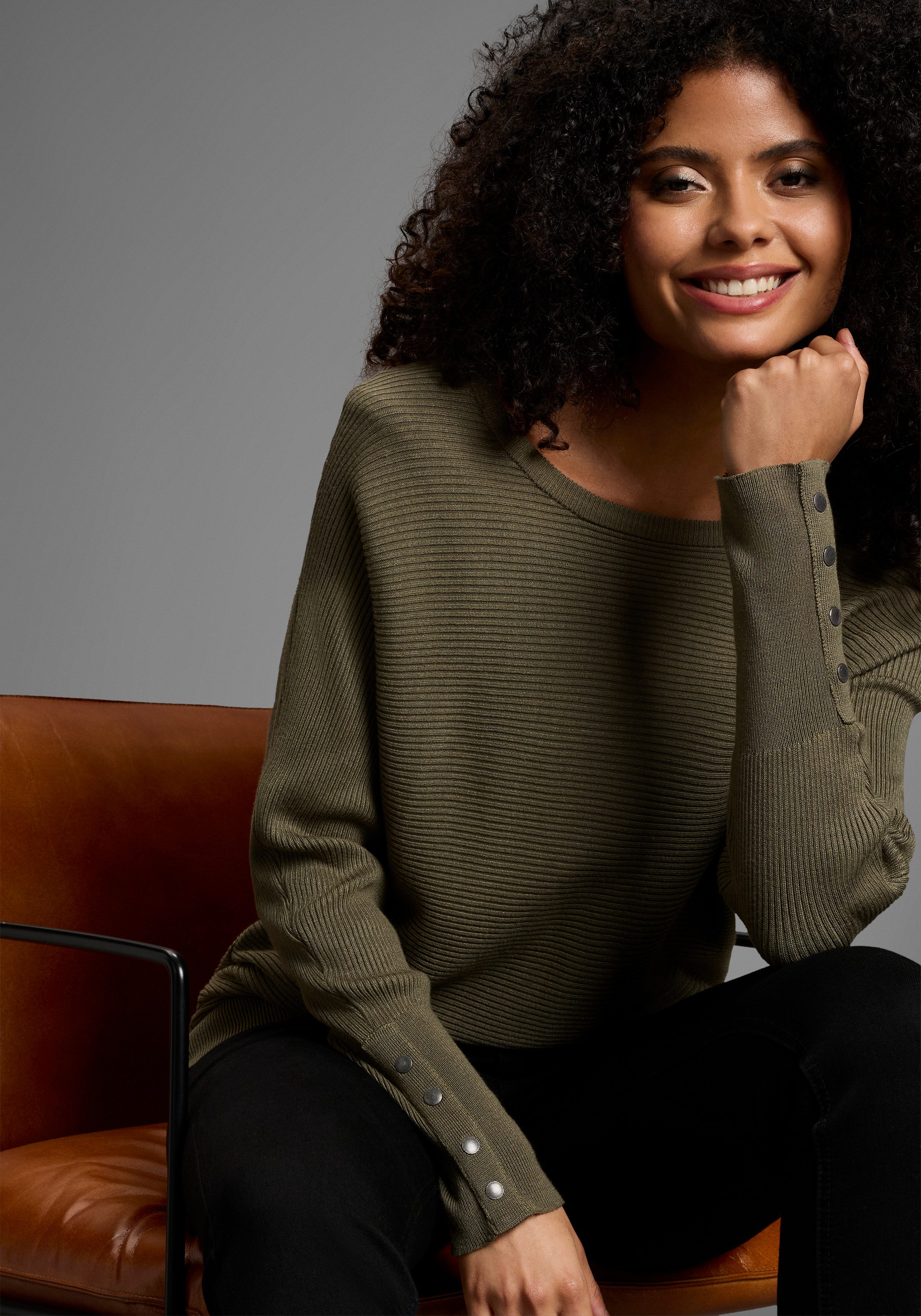 Besondere Merkmale | mit überschnittenen Ärmeln in Rippstrick |