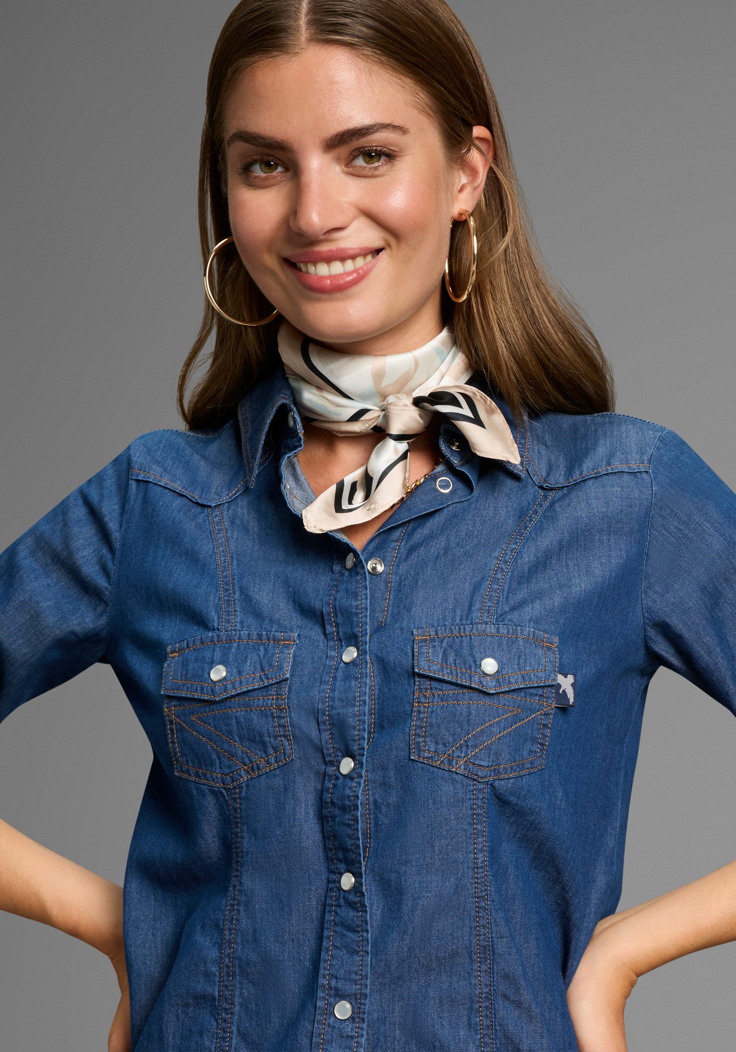 Das Tuch lässt sich dank der auffälligen Musterung gut zu schlichten Oberteilen kombinieren. Getragen mit ähnlichen Farben oder Materialien wird im Handumdrehen ein gut abgestimmtes Outfit für Meetings oder Geschäftsessen kombiniert. Wenn du mal etwas anderes ausprobieren willst, kannst du dein Tuch auch schön an deiner Tasche befestigen oder als Haarband verwenden.