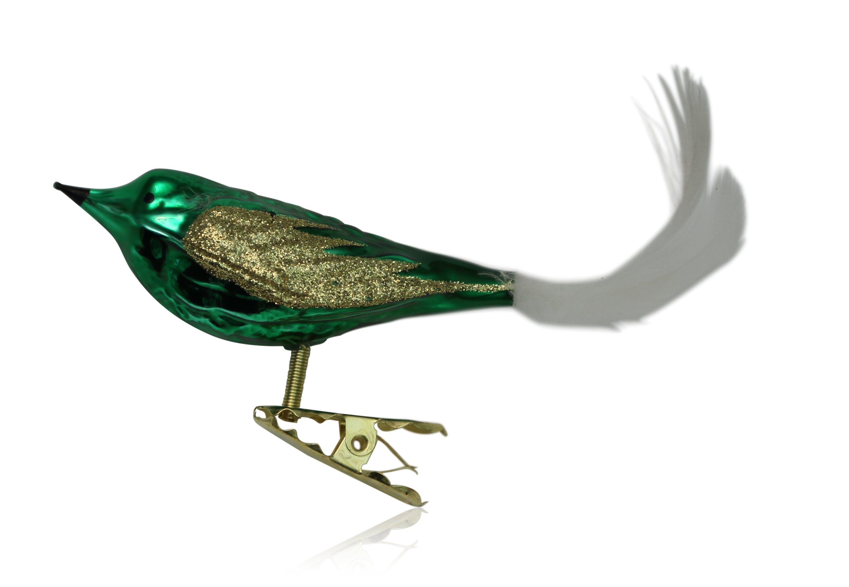 Diese mundgeblasenen und handbearbeiteten Christbaumschmuckglasvögel werden noch nach alter Tratition in Lauscha hergestellt. Hier finden Sie eine große Auswahl an verschiedenen Farben von mundgeblasenen Weihnachtsbaumvögeln. Vögel am Weihnachtsbaum können verschiedene Bedeutungen haben, je nach kulturellem Hintergrund, Traditionen und persönlichen Interpretationen. Hier sind einige mögliche Bedeutungen von Vögeln als Weihnachtsbaumschmuck: Naturverbundenheit: Das Hinzufügen von Vogeldekorationen zum Weihnachtsbaum kann eine Verbindung zur Natur und zur Schönheit der Tierwelt symbolisieren. Dies kann die Wertschätzung für die Natur und die Umwelt betonen, insbesondere in einer Zeit, in der der Winter die Vögel vor Herausforderungen stellt. Frieden und Freiheit: Vögel sind oft ein Symbol für Frieden und Freiheit. Das Hinzufügen von Vogeldekorationen zum Weihnachtsbaum kann daher den Wunsch nach einer friedlichen und freien Welt in der Weihnachtszeit symbolisieren. Religiöse Bedeutung: In einigen christlichen Traditionen können Vögel auf dem Weihnachtsbaum an die Engel erinnern, die die Geburt Jesu verkündet haben. Engel werden oft mit Flügeln dargestellt, und Vögel könnten diese himmlische Verbindung symbolisieren. Hoffnung und Verheißung: Vögel, die auf dem Weihnachtsbaum platziert sind, könnten auch die Hoffnung und Verheißung symbolisieren, die die Geburt Jesu Christi für die Christen bedeutet. Vögel stehen oft für Freiheit und die Vorstellung, dass Gottes Barmherzigkeit und Liebe für die Menschheit wie ein Vogel fliegen und über allem schweben. Tradition und Dekoration: Manchmal werden Vögel einfach aus dekorativen Gründen auf den Weihnachtsbaum gesetzt, ohne eine spezifische symbolische Bedeutung. In diesem Fall dienen sie dazu, den Baum zu verschönern und das festliche Ambiente zu verstärken.