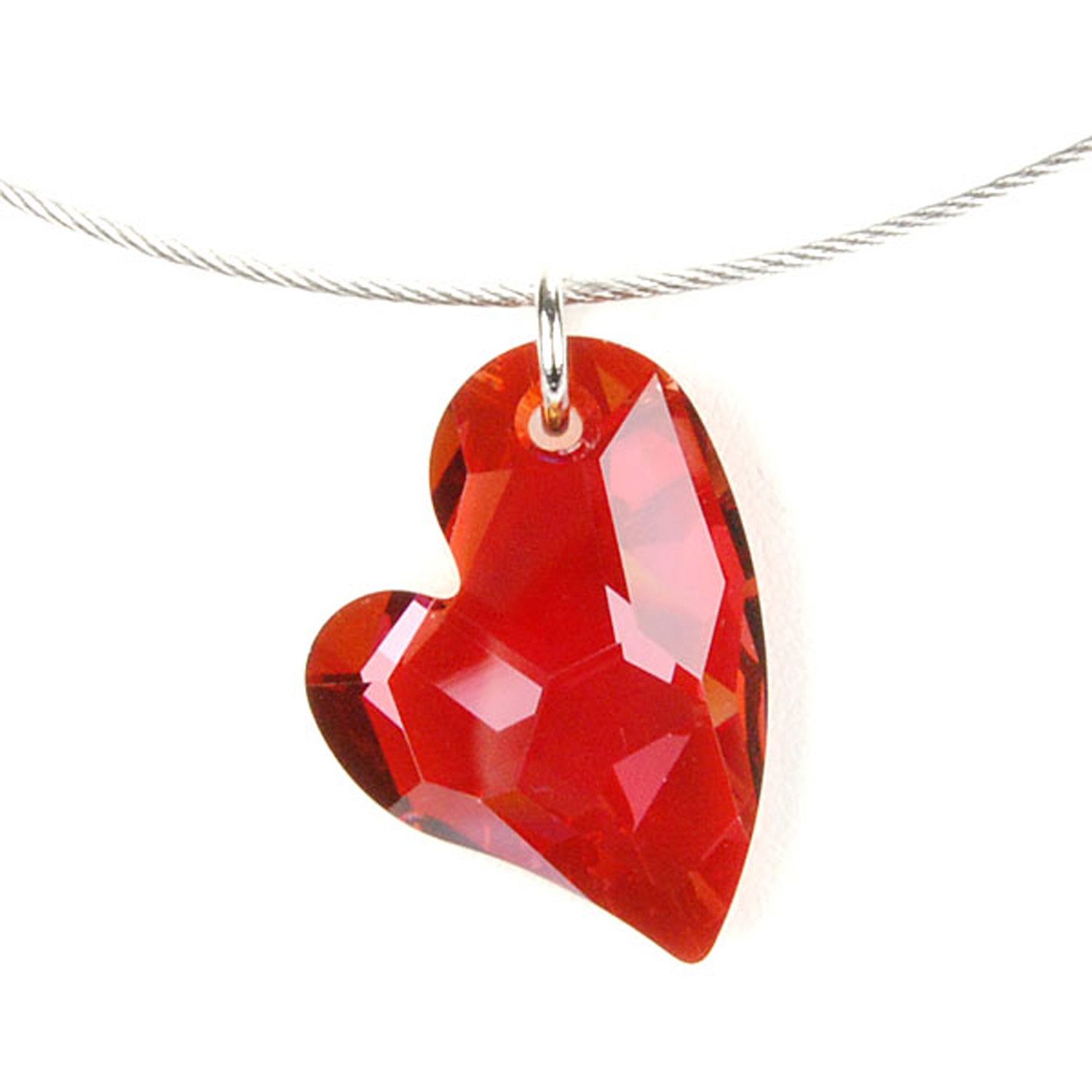 Elegantes Collier aus Schmuckdraht (Stärke 1,2 mm) und mit einem Herzkristall-Anhänger (Ø 28 mm), Markenkristall aus Österreich.