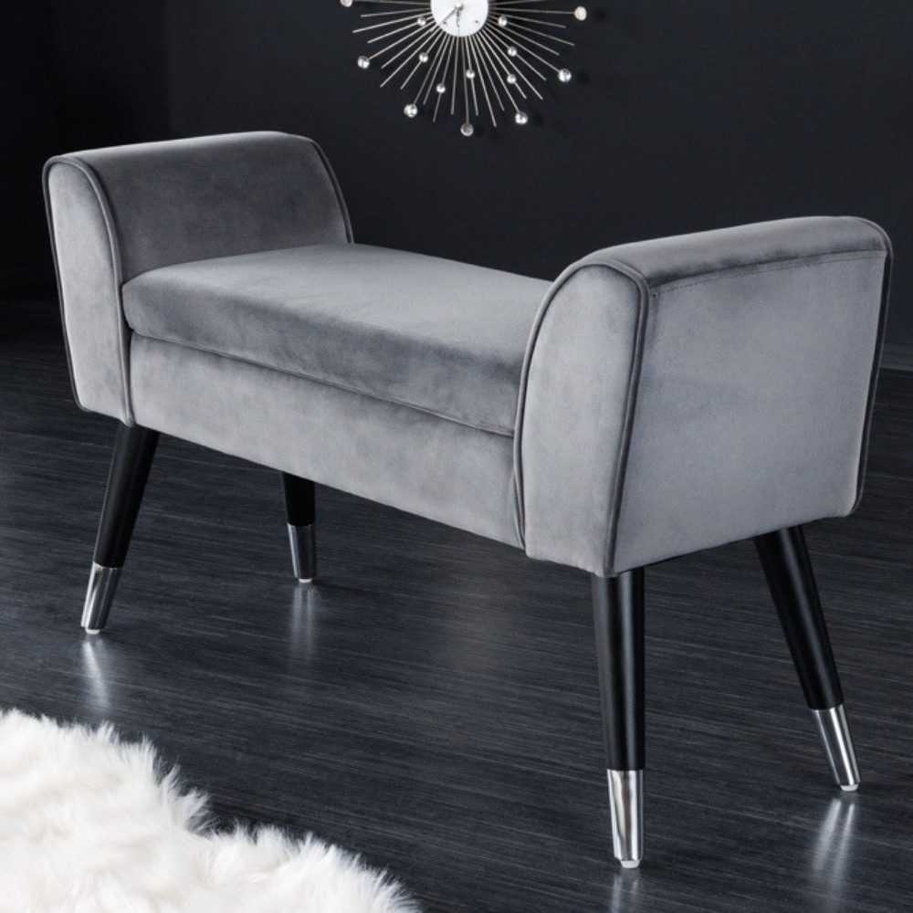 Die Kombination aus glamourösen Samtbezug und den schwarzen Füßen mit Metallapplikationen zieht nicht nur alle Blicke auf sich, sondern lässt sich auch sehr gut mit verschiedenen Einrichtungsstilen und Möbeln kombinieren. Daher ist es einfach, die Sitzbank im Flur, Wohnzimmer oder Schlafzimmer zu positionieren und somit jedem Wohnraum ein kleines, extravagantes Design-Highlight zu verleihen.