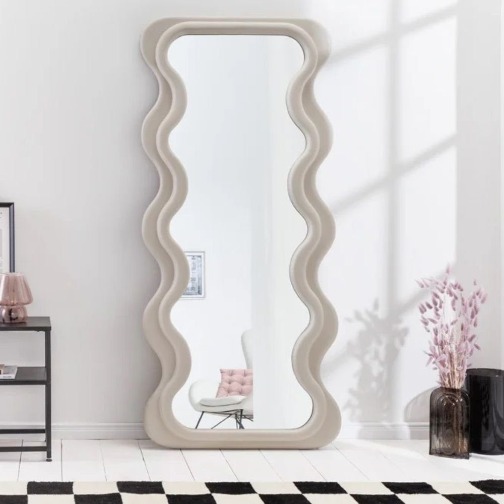 Der Wellen-Spiegel bringt den abstrakten Trend-Look in Dein Zuhause! Vom Landhausstil bis hin zum minimalistischen Ambiente: Der dekorative Design-Spiegel ist kompatibel mit den unterschiedlichsten Wohnstilen und Möbelstücken. Unser Interior-Tipp: Kombiniere den Ganzkörperspiegel mit weiteren Deko-Accessoires in hellen Erdtönen und einem passenden Teppich – so entsteht ein stimmiges Wohnkonzept!