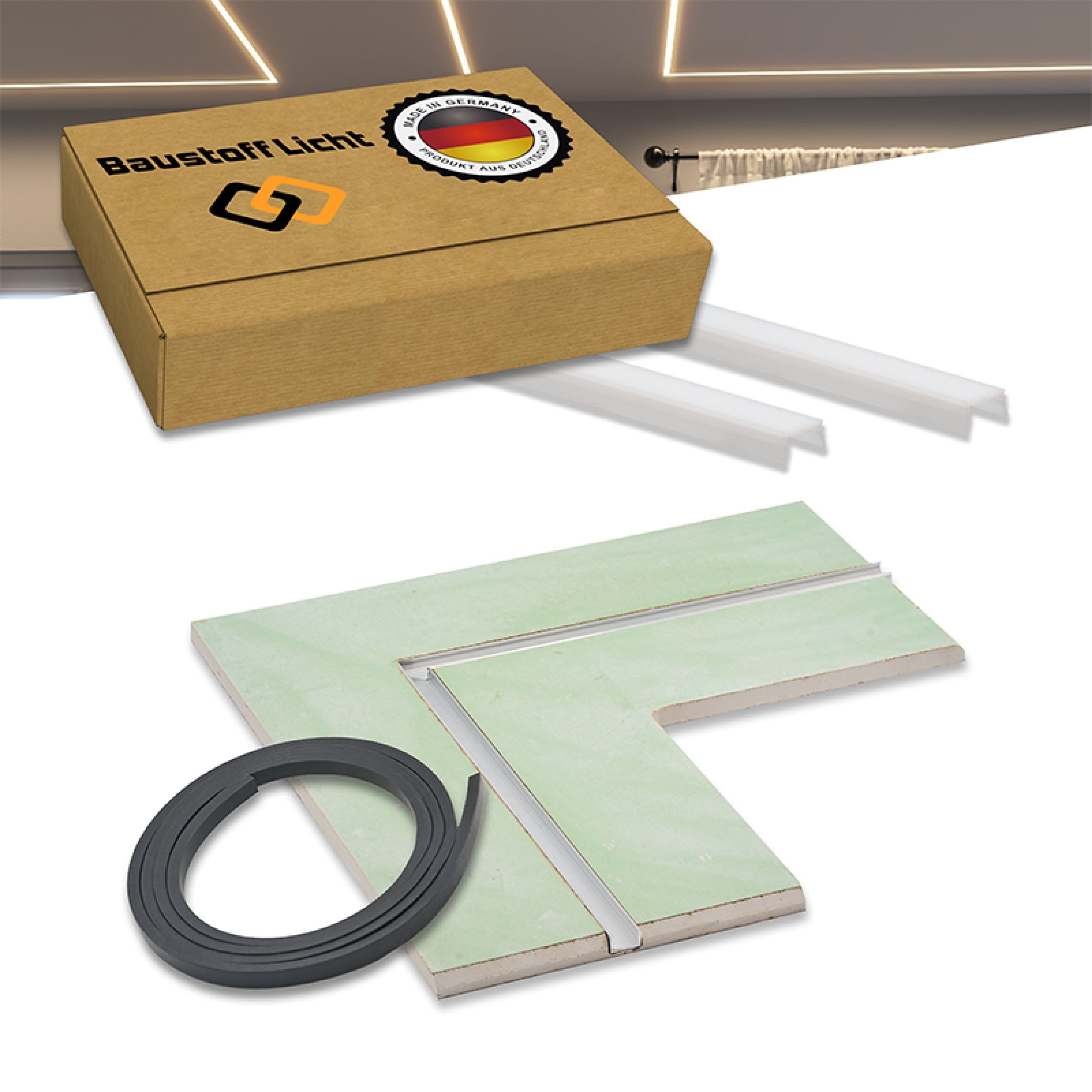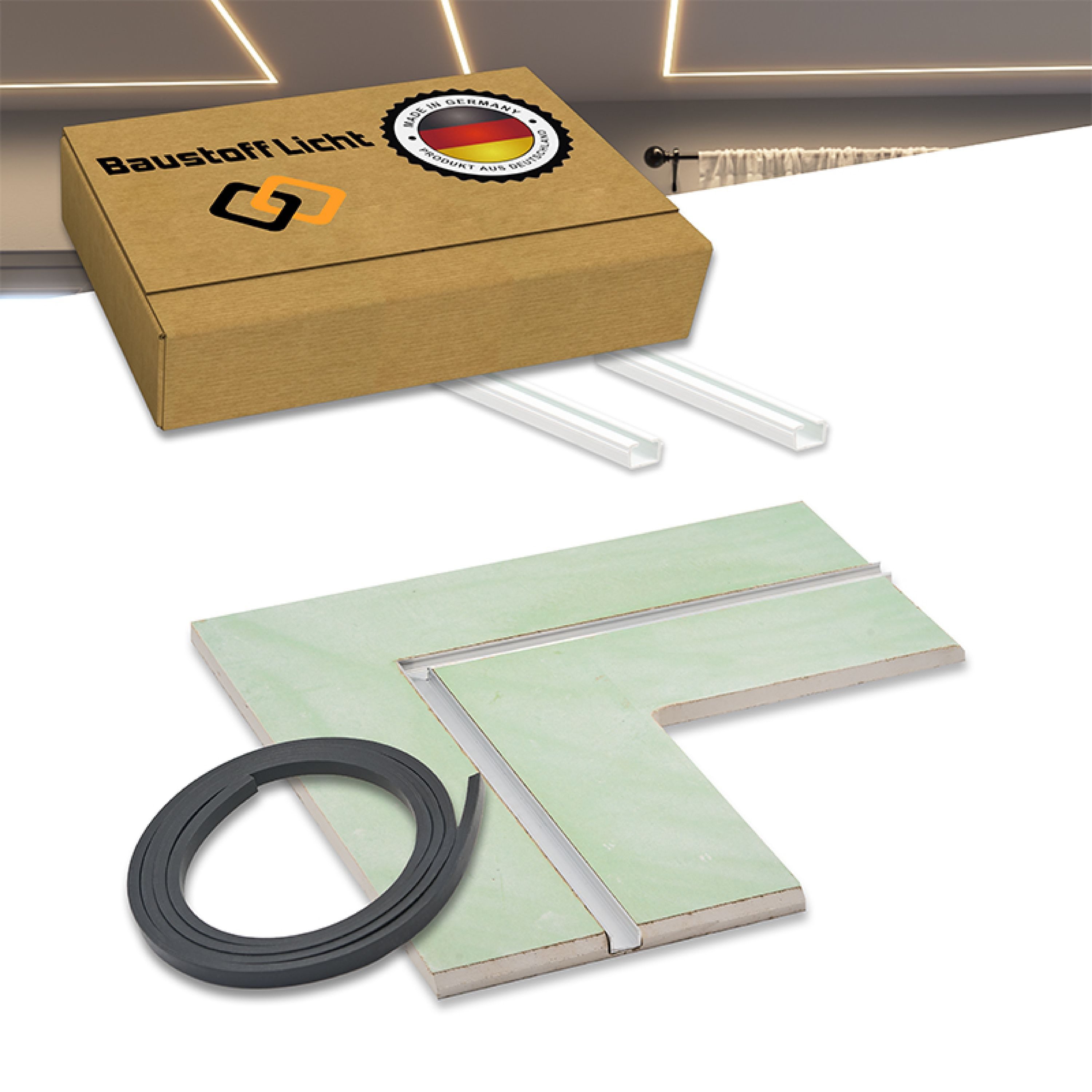 Vervollständige deine Raumgestaltung mit der DL Ecke, dem idealen 90-Grad-Gipspaneel, das deine langen DL-Paneele perfekt ergänzt. Egal ob ein- oder zweiläufig, mit LED-Abdeckung oder Vorhangschiene – die DL Ecke ermöglicht es dir, deine Licht- und Raumkonzepte nahtlos und stilvoll umzusetzen.