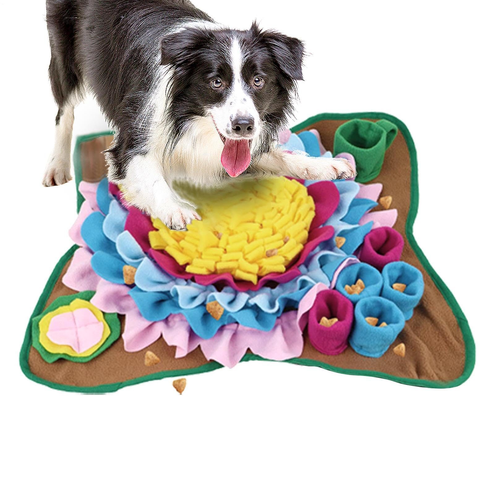 Rutschfeste Unterseite: Die Unterseite der Schnüffelmatte ist mit einem rutschfesten Stoff versehen, um die Matte effektiv zu fixieren und ein Verrutschen zu verhindern. Maschinenwaschbar und trocknergeeignet, damit sich Haustiere drinnen und draußen bewegen können.