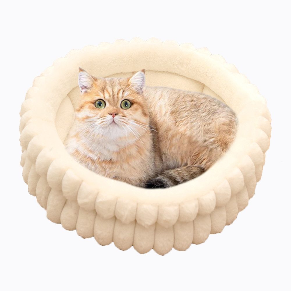 Rutschfeste Unterseite: Das runde Katzenbett verfügt über eine rutschfeste Unterseite, die stabil und langlebig ist und ein Verrutschen verhindert. Ob auf Fliesenböden oder Massivholzböden – Ihr Haustier liegt sicher und bequem.
