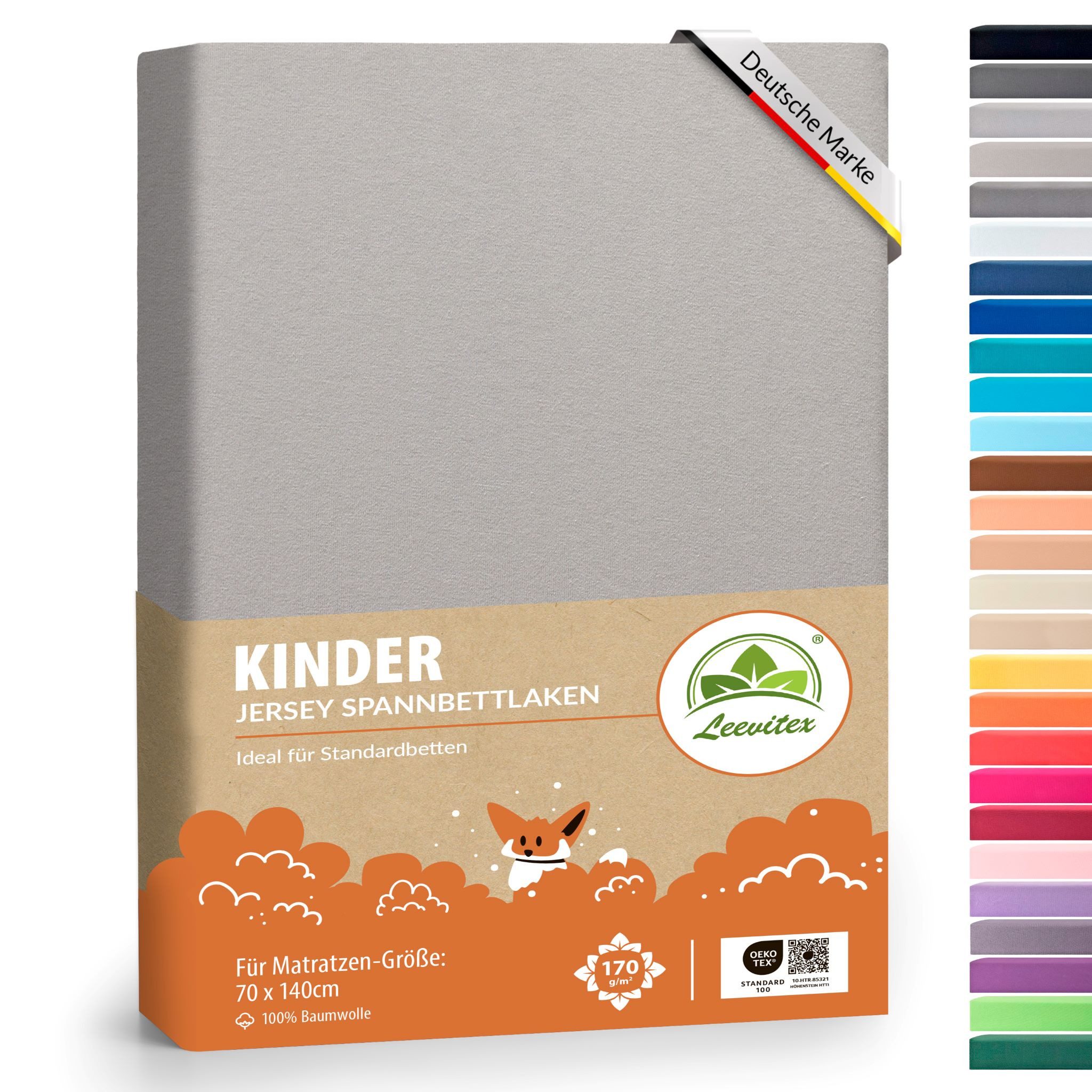Ein passendes Bettlaken ist für einen guten Schlaf im Kinderbett das A und O. Durch den direkten Hautkontakt sorgen Baby Laken für den maximalen Schlafkomfort. Die weichen und anschmiegsamen Spannbettlaken von leevitex sind dabei perfekt auf die Bedürfnisse der Kinder angepasst. Betttücher für Kinder übernehmen nicht nur eine wichtige Schutzfunktion. Mit unseren Kinderspannbettlaken in sanften oder kräftigen Farbtönen können Sie schöne optische Akzente im Kinderzimmer setzen. Da Kinder bunte Farben und weiche Stoffe toll finden, bieten wir eine große Auswahl an diversen Farbtönen an. Unsere Spannbettlaken aus Jersey sind kuschelig weich. So kann Ihr Kind abends in seinem Bett wunderbar zur Ruhe kommen. Dank des hautfreundlichen Materials (100% Jersey-Baumwolle) fühlen sich unsere Betttücher für Kinder angenehm auf der Haut an und wirken temperaturausgleichend. Wir lassen unsere Betttücher ohne die Zugabe von Schadstoffen produzieren. Spannbettlaken sind in der Handhabung besonders praktisch, denn durch den elastischen Rundumgummizug lassen sie sich im Handumdrehen an der Matratze befestigen. Außerdem können die Spannbettlaken kaum verrutschen, selbst wenn sich die Kleinen im Schlaf viel bewegen. Die Bettlaken in der Размер 70 x 140 cm eignen sich für Matratzen bis zu einer Steghöhe von ca. 15 cm. Üblicherweise soll man das Bett alle zwei bis drei Wochen neu beziehen, wobei Kinderspannbettlaken i.d.R. häufiger gewechselt werden. Das Spannbetttuch sollen Sie am besten zusammen mit der restlichen Bettwäsche waschen. Jersey gehört zu den beliebtesten Stoffen für Spannbettlaken, weil es besonders pflegeleicht ist. Auch unsere Kinderspannbettlaken sind strapazierfähig und langlebig. Trotzdem ist es wichtig, Pflegehinweise zu beachten, damit Sie sich an den Kinder Bettlaken von leevitex lange erfreuen können. Waschen Sie Ihre Spannbettlaken daher möglichst mit der Wäsche aus derselben Farbfamilie. Dunkle Farben sollten dabei stets separat gewaschen werden.