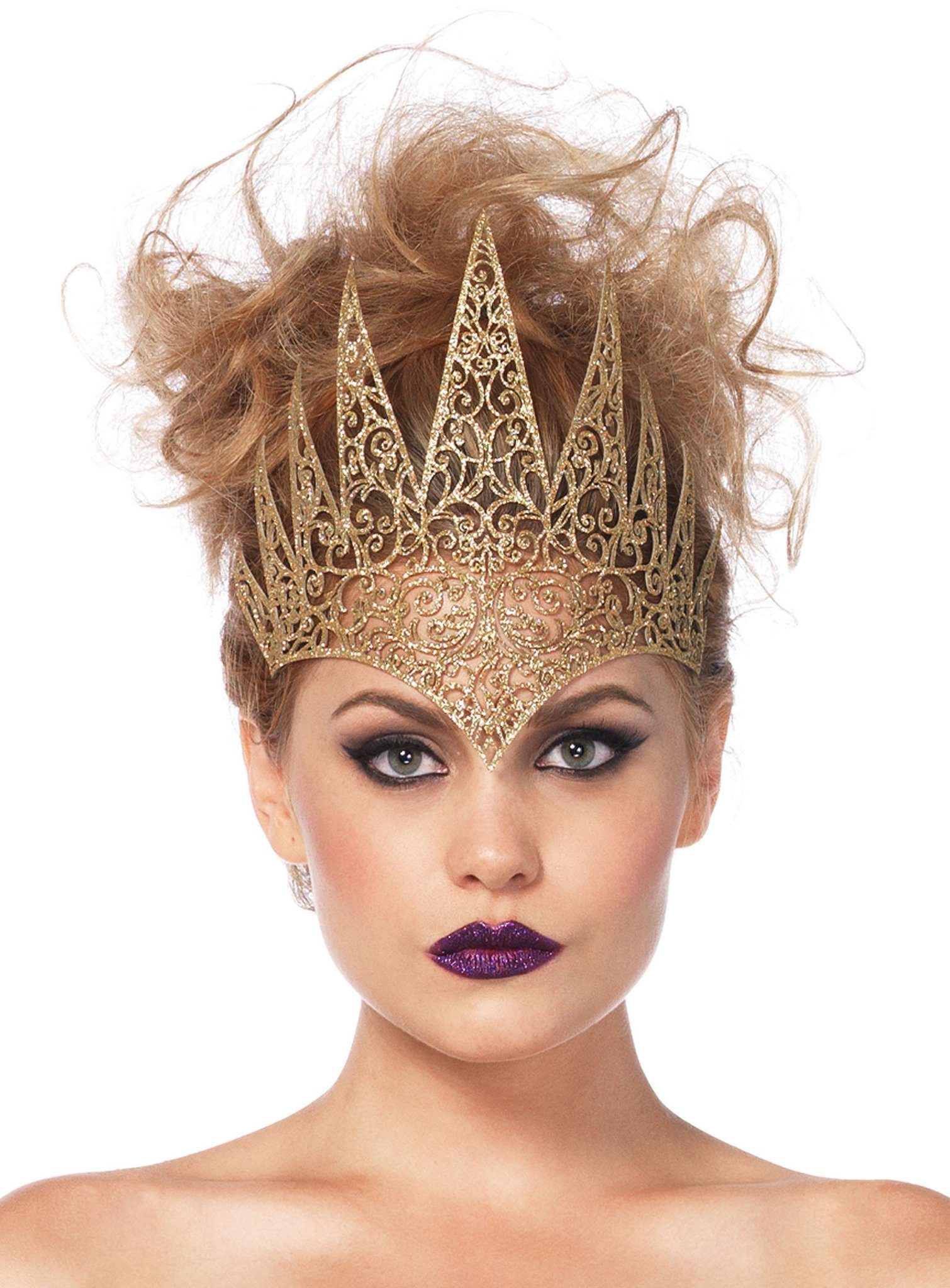 Wunderschöner Kopfschmuck für finstere Frauengestalten: Böse Königin Krone gold. Filigraner, aber dennoch stabiler Kopfschmuck in Universalgröße für Erwachsene.