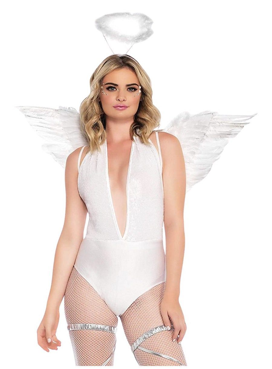 Engel verkünden nicht nur frohe Botschaften, sie sehen in der Regel auch verdammt gut aus! Mit dem Sexy Weißer Engel Accessoire Set könnt Ihr Euch als göttliches Geschöpf verkleiden und auf der nächsten Karenvalsparty die Erdlinge verzücken.