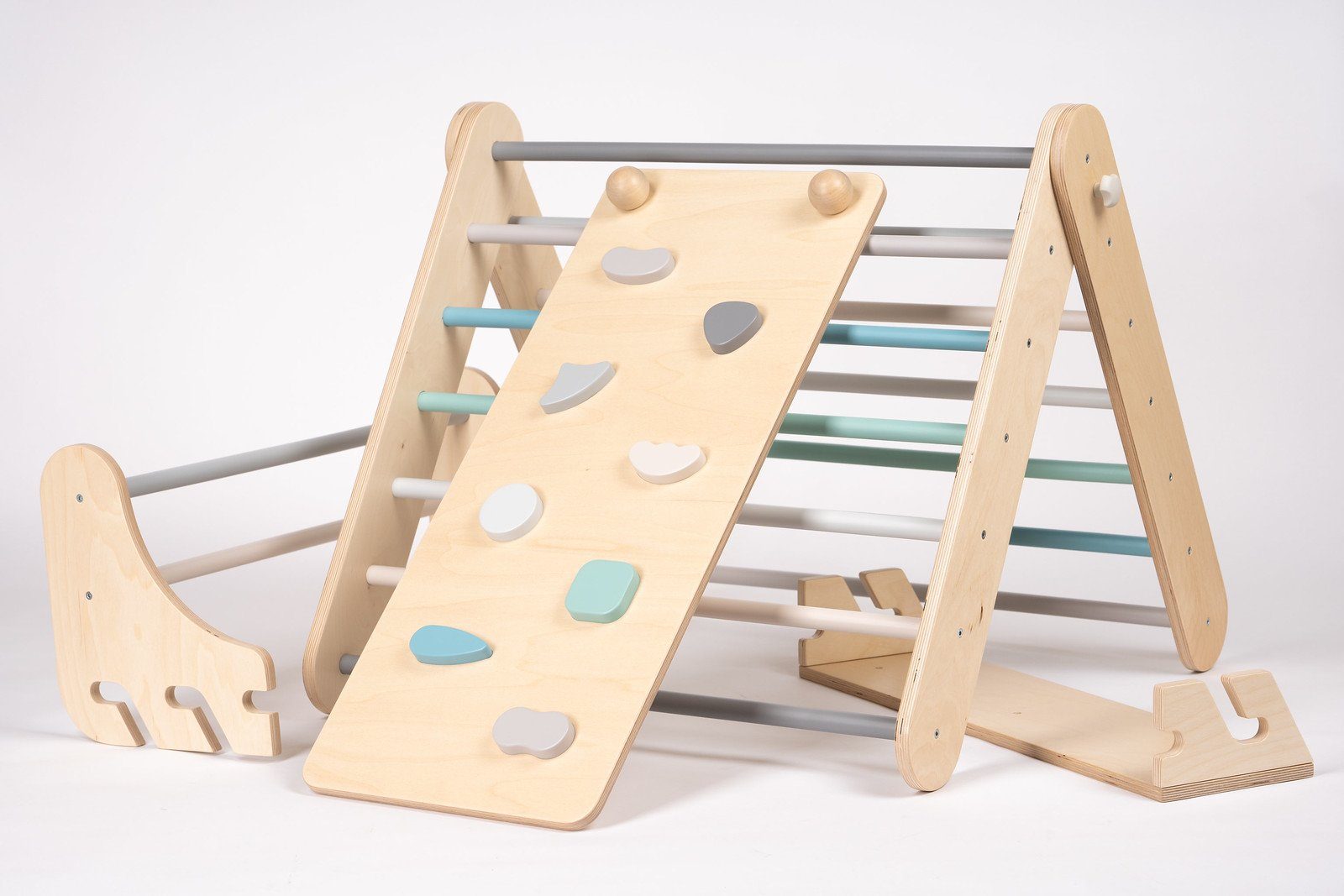 Pikler Kletterdreieck Was ist das Pikler-Dreieck? Benannt nach Dr. Emmi Pikler (1902-1984) selbst, ist das Pikler-Dreieck ein Kletterobjekt, das Kinder in ihrem eigenen Tempo erforschen können. Es ermöglicht Kindern, ihren Körper kennenzulernen, ihre Grenzen auszutesten und ihre Kletterbedürfnisse auszuleben. Unser Pikler-Dreieck ist ein einzigartiger Spielplatz direkt in Ihrem Zuhause für Kinder im Alter von 6 Monaten bis fünf Jahren. Obwohl es ein Spielzeug ist, das zum Klettern gedacht ist, können die Holzstangen des Pikler-Dreiecks bereits von Babys im Alter von etwa sechs Monaten benutzt werden, um sich an ihnen hochzuziehen und zu stehen. Sobald sie älter sind und laufen können, werden sie nach und nach anfangen es weiter zu erkunden und zu klettern. Als vielseitiges, funktionelles Kletterdreieck bietet unser Pikler-Dreieck endlose Lern- und Unterhaltungsmöglichkeiten. Das Dreieck kann in viele verschiedene Formen verwandelt werden.