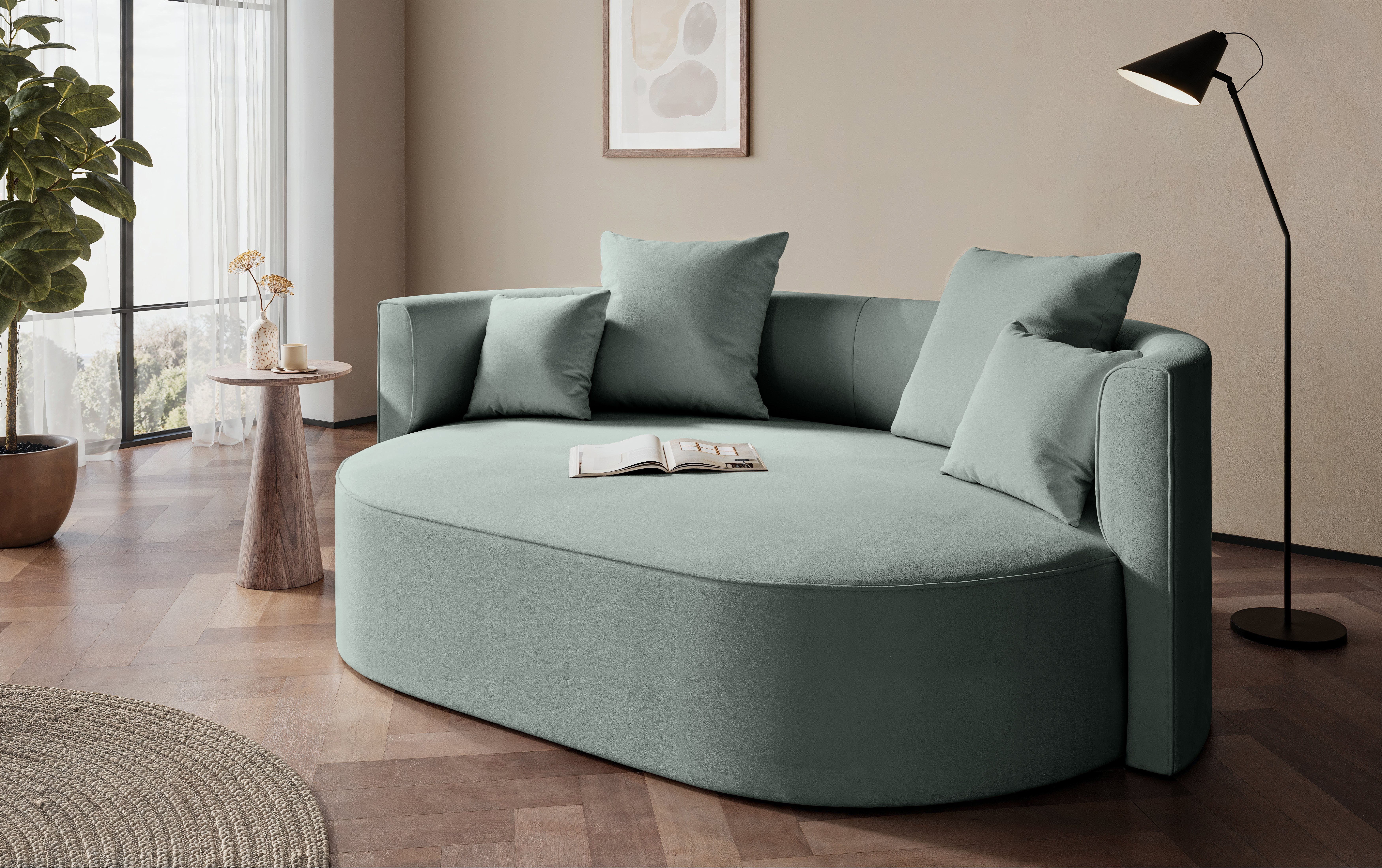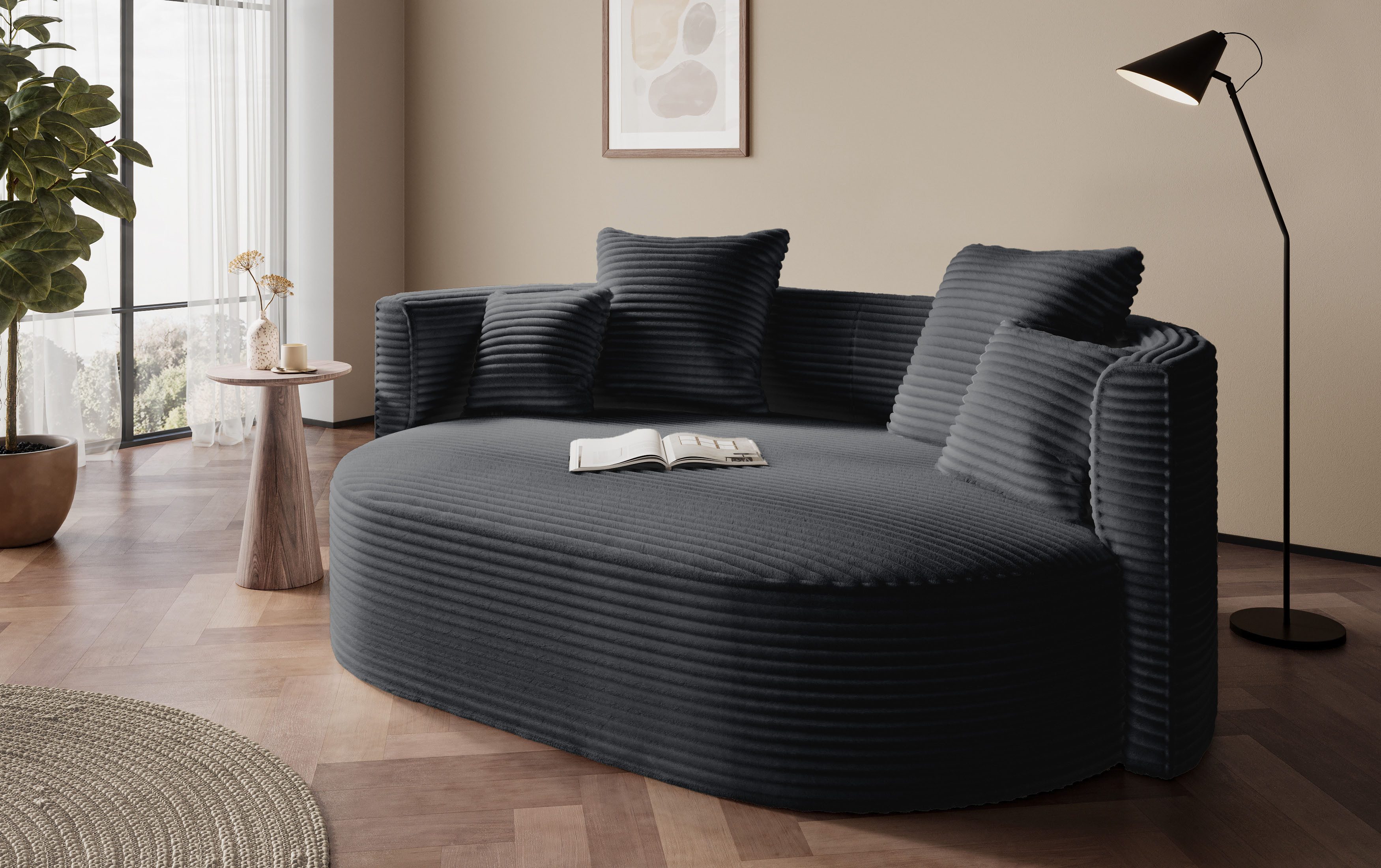 Eine gute Grundlage für deine Ruhezone — der 2,5-Sitzer »ISALIE, rundes Loungesofa, mit Kissen, perfekt gepolstert« von LeGer Home by Lena Gercke.