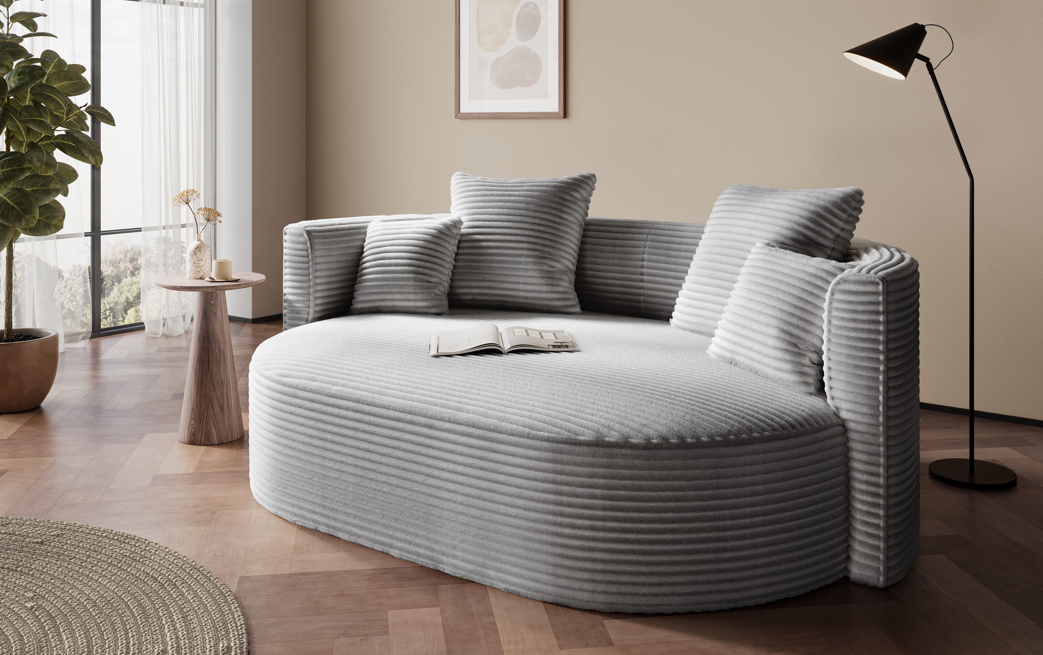 Wissenswertes | Verfügbar in hochwertigem MEGA-Cord mit weicher Velours-Struktur, Bouclé-Stoff mit weicher Noppen-Struktur oder hochwertiger Samtoptik mit glatter Struktur! |