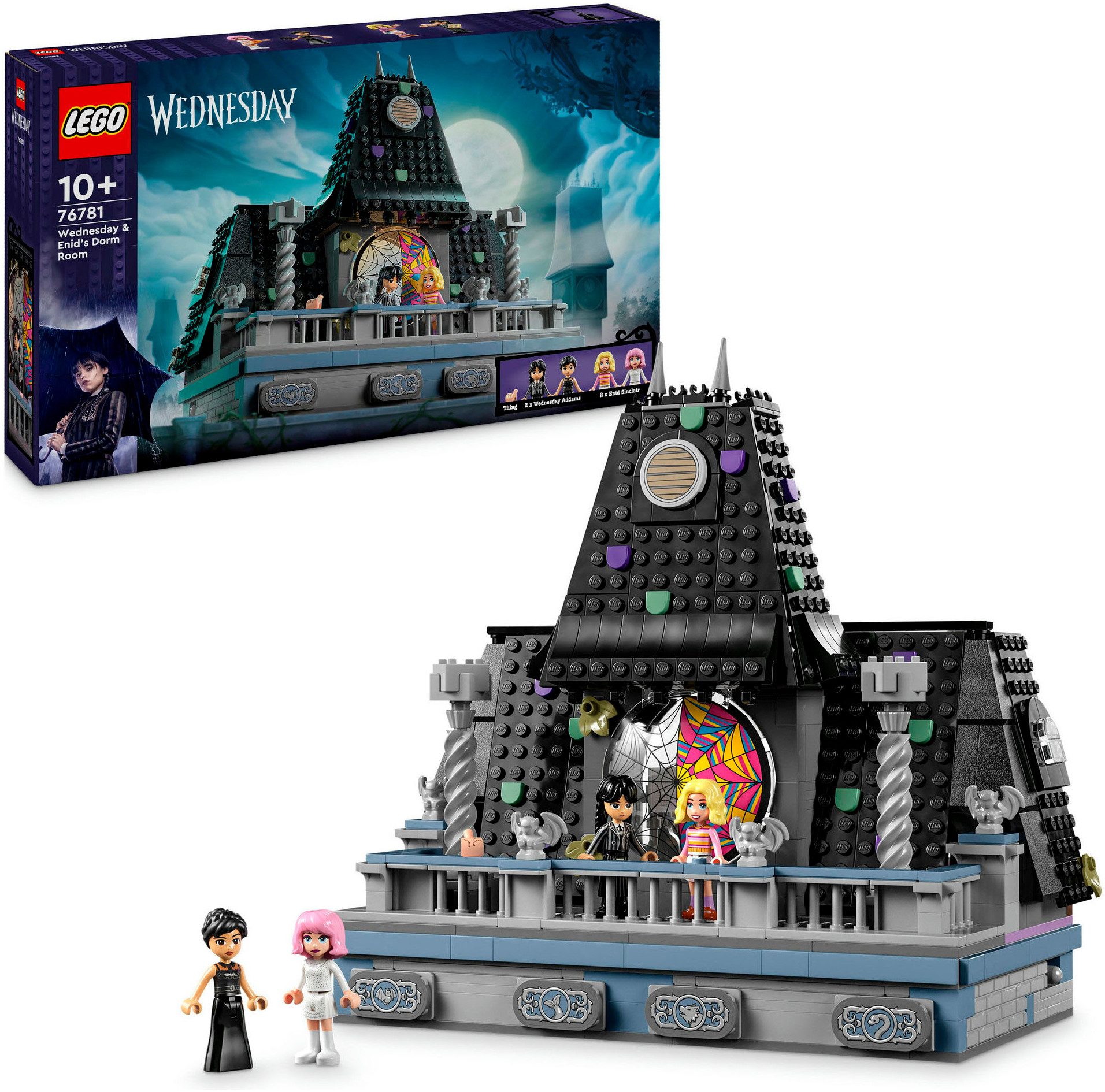 Ausstattung | Abenteuerspielset: Das Eiskalte Händchen und 4 Figuren – je 2 Versionen von Wednesday und Enid – laden zu raffinierten Rollenspielen ein; Jede der Spielzeugfiguren trägt andere Outfits, Haarteile und Gesichtsausdrücke, Detailgetreues Spielzeug zum Sammeln: Das Bauset mit jeder Menge unverwechselbarer Dinge und Details aus der TV-Serie Wednesday lässt Kinder viele Geschichten darstellen und das spektakuläre Modell dann zur Schau stellen, Fantasievolles Spielvergnügen: LEGO Wednesday Sets bieten jungen Fans von Detektivgeschichten tolle Bauoptionen und coole Details, die Kinder Erzählkünste und Kreativität entwickeln lassen; erlebe unzählige Fantasy-Abenteuer mit Wednesday Addams, Intuitive digitale Bauanleitung: In der LEGO Builder App ist eine digitale Version der Bauanleitung zu diesem spannenden Fantasy-Spielset verfügbar; Kinder können mit der App unter anderem 3D-Modellansichten vergrößern und drehen, Nevermore Academy Set : Das Spielset beinhaltet ein baubares Internatszimmer mit aufklappbarem Fenster (mit Spinnennetzrissen), einen Sockel mit Knöpfen zum Öffnen der Geheimfächer und einen Balkon mit 4 Wasserspeiern, Wednesday Addams Geschenk: Dieses kreative LEGO Set ist ein faszinierendes Geburtstags- oder Überraschungsgeschenk für Fans der TV-Serie ab 10 Jahren, die Wednesday Addams schwarzen Humor und Enids freche Art lieben, Wednesday Addams Spielzeug: Wednesdays und Enids Zimmer im Studentenwohnheim beinhaltet ein Zimmer mit 2 Geheimfächern, 4 Spielfiguren und jede Menge Details, die Fans der TV-Serie auf eine spannende Wahrheitssuche schicken |