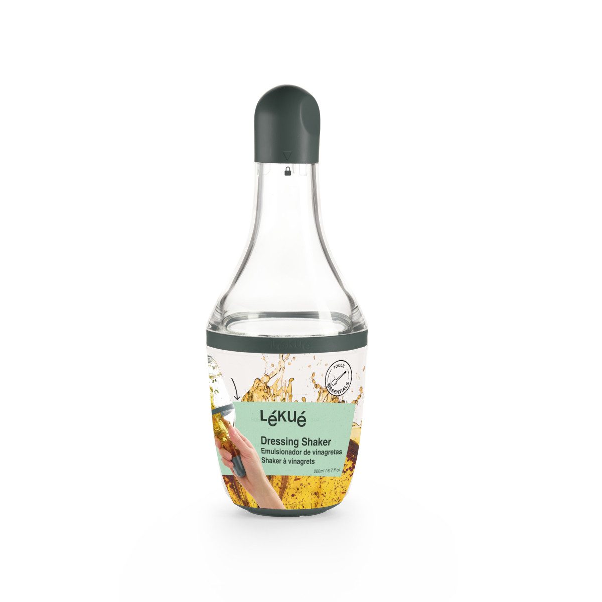 In dem Dressing-Shaker von Lekue bereiten Sie n Vinaigrette und Saucen für hausgemachte Salate durch Schüttel zu. Die Form des cleveren Küchengadgets erinnert ein bisschen an die spaßigen mittelamerikanische Maraca-Instrumente, die kräftig rasseln. Sie füllen nämlich in den Shaker zuerst alle Zutaten fürs Salatdressing ein, verschließen ihn dann, greifen sich dann die schmale Seite und schütteln einfach drauf los. Die Kunststoff-Silikon-Kugel im Inneren vermischt die Zutaten dann zu einer geschmeidigen Emulgation, die direkt aus dem Shaker auf den Salat gegossen werden kann. Всеs in einem: Zubereiten, Mischen und Servieren - wie praktisch! Und einfach zu reinigen ist der Behälter auch, sogar in der Spülmaschine.