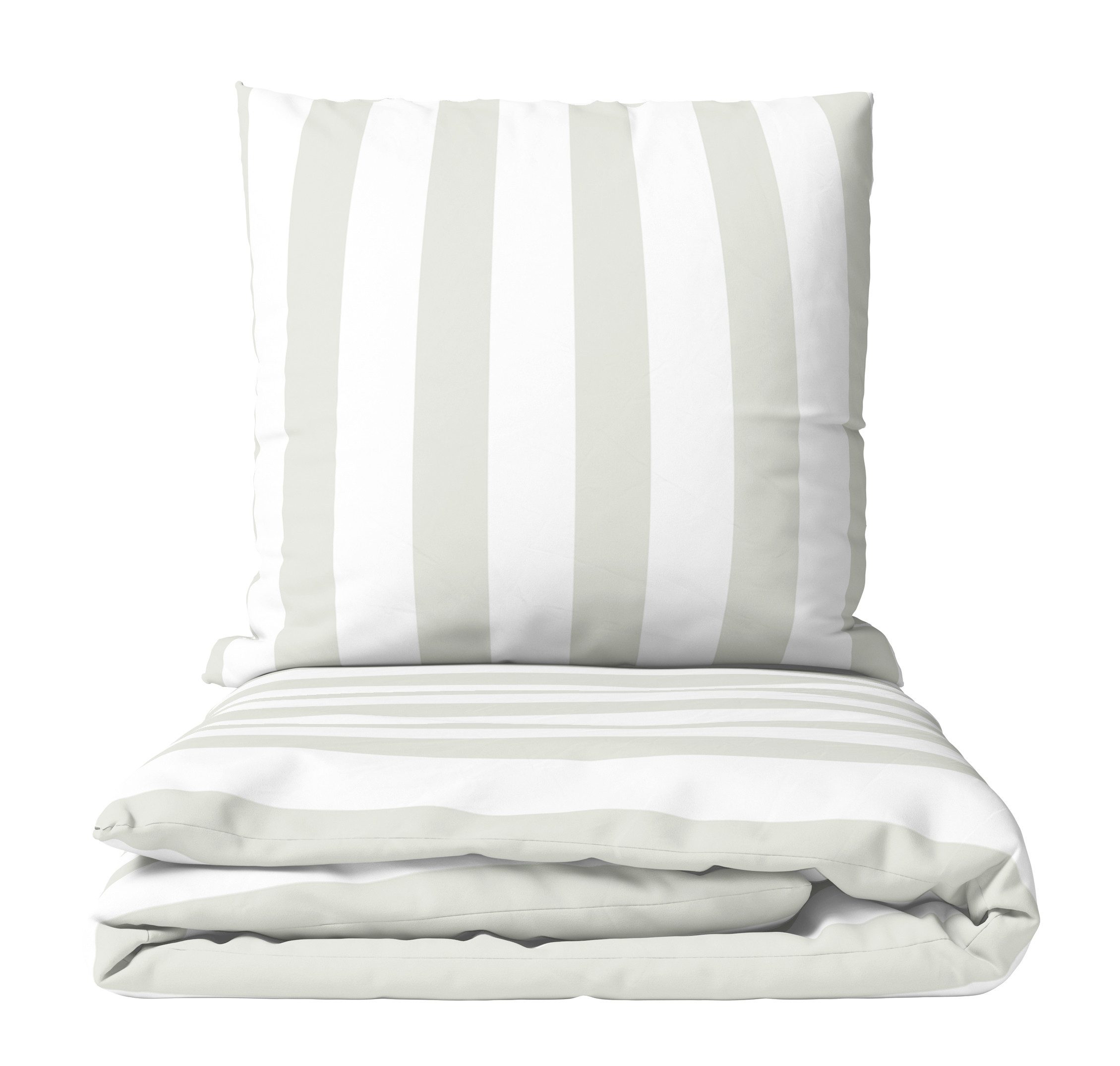 Das Bettwäsche-Set in edlem Weiß-Grau-Streifendesign bringt schlichte Eleganz in Ihr Schlafzimmer. Die weiche Jersey-Qualität aus 100% Baumwolle sorgt für optimalen Schlafkomfort und ist besonders angenehm auf der Haut.