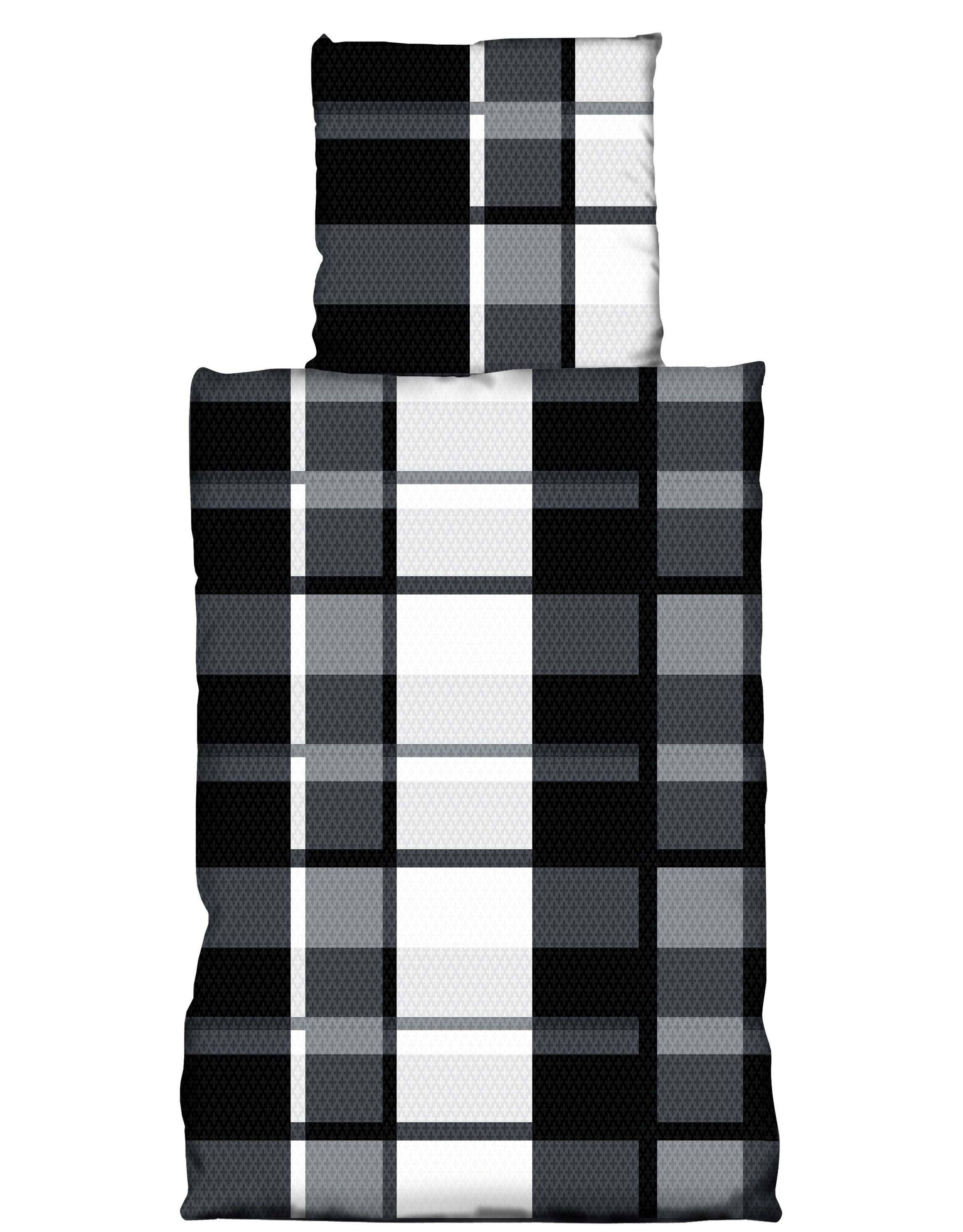 Das moderne karierte Design in stilvollen Schwarz-, Grau- und Weißtönen wird durch dezente Ornamente ergänzt, was diese Bettwäsche zu einem echten Hingucker macht.