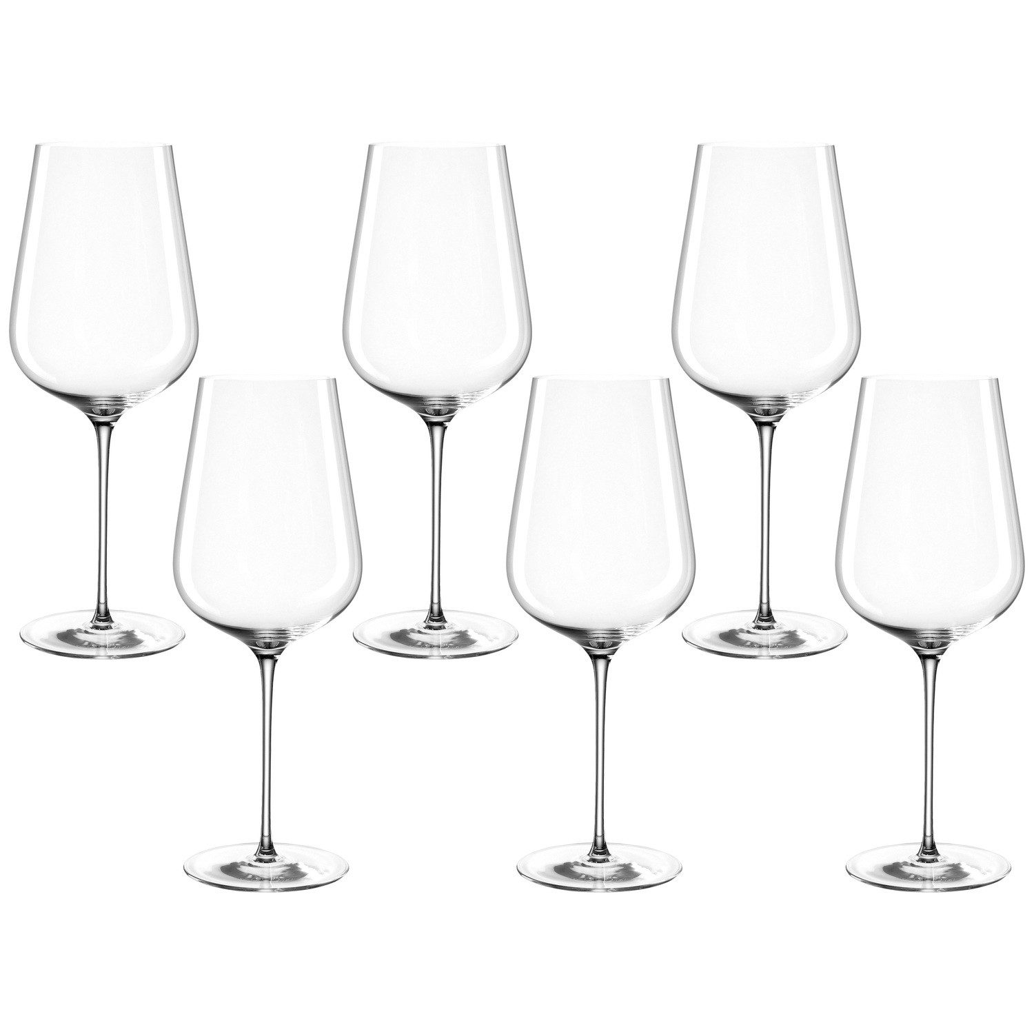 Leonardo Brunelli Rotwein-Gläser Set, 6-teilig, 740 ml Die Rotwein-Gläser aus der Brunelli Serie stehen mit ihrer wunderbaren, harmonischen Form für Modernität. Dank ihres eleganten und zeitlosen Designs lassen sich die Rotwein-Gläser zu vielen Stilen kombinieren. Zudem erzeugen die Wein-Gläser beim Anstoßen einen klangvollen Ton. So werden Feiern und Anlässe wie Weihnachten, Geburtstage oder Hochzeiten noch schöner. Hohe Qualität wird dank der selbst entwickelten Teqton-Glasrezeptur von Leonardo gewährleistet. Das Qualitätssiegel steht für robustes und stoßfestes Glas, damit Sie langanhaltende Freude an Ihren Gläsern haben. Darüber hinaus erhalten Sie Gläser mit dauerhafter Brillanz und Transparenz, die spülmaschinenfest sind und Kunden langfristig mit einem positiven und leichten Lebensgefühl anstecken. Produkteigenschaften • Spülmaschinenfest • Geeignet für 200 ml Nutzinhalt (740 ml Randvollvolumen) • 160 g Einzelgewicht • Maße: 26 x 10 x 10 cm (HxBxT) Besonderheiten • Wein-Gläser aus der Serie Brunelli • Hohe Qualität dank Teqton-Glasrezeptur • Stiel ohne Pressnaht • Besonders elegant dank gezogenem Stiel • Dank besonderer Form für verschiedenste Weinsorten einsetzbar Darf es etwas mehr sein? Kombinieren Sie dieses Set mit anderen Produkten der Brunelli Serie, z. B. mit dem Brunelli Trink-Glas oder mit dem Brunelli Champagner-Set. So entsteht ein harmonischer Gesamteindruck, der die elegante Designlinie fortführt und Ihre Getränke gekonnt in Szene setzt. Leonardo Familienunternehmen seit 1972: Leonardo ist eine Marke des Familienunternehmens Glaskoch. Mit viel Aufmerksamkeit und Liebe zum Detail entstehen einzigartige Produkte, die ein zauberhaftes Lebensgefühl in Ihr Zuhause bringen.