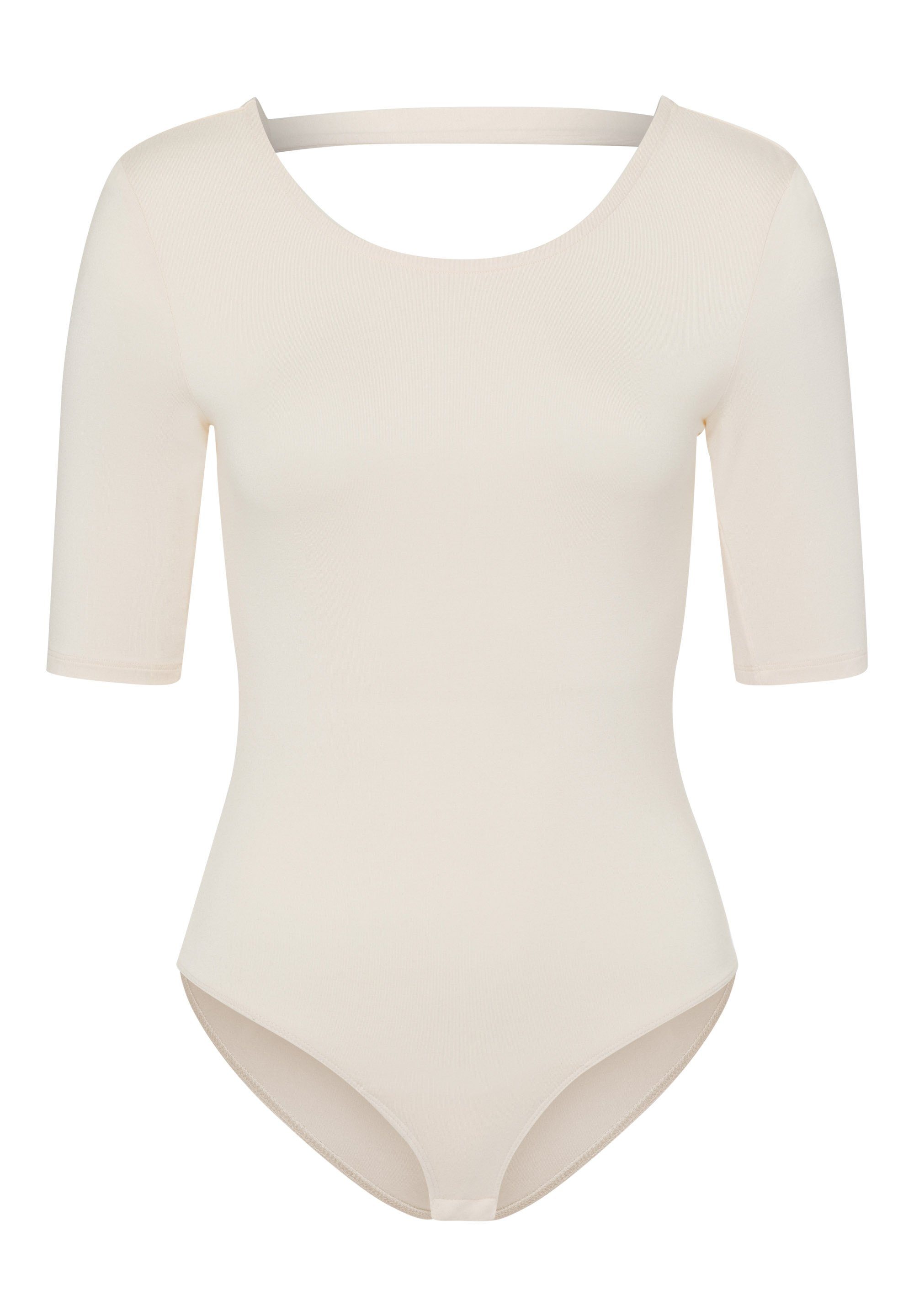 The Charlotte Bodysuit schmiegt sich dank des leichten, atmungsaktiven Materials wie eine zweite Haut an. Er verfügt über halbe Ärmel und eine klassische Slip-Passform, die durch drei Druckknöpfe verschlossen wird. Der tiefe Ausschnitt und die Details im Rückenbereich machen diesen Bodysuit zum besonderen Hingucker