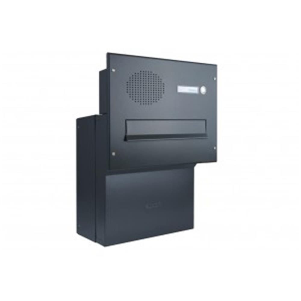 Der F-04 Mauerdurchwurfbriefkasten mit Sprechanlage in elegantem Anthrazitgrau oder Tiefschwarz bietet eine flexible Tiefe, ein großes Volumen und eine praktische Entnahmetür. Die klassische Frontplatte mit Sprechsieb verleiht dem Briefkasten eine zeitlose Optik. Dank der stufenlosen Tiefenverstellung von 18 bis 27 cm passt sich der Briefkasten Ihren Bedürfnissen an und bietet ein Aufnahmevolumen von ca. 14,2 bis 35,5 Litern.