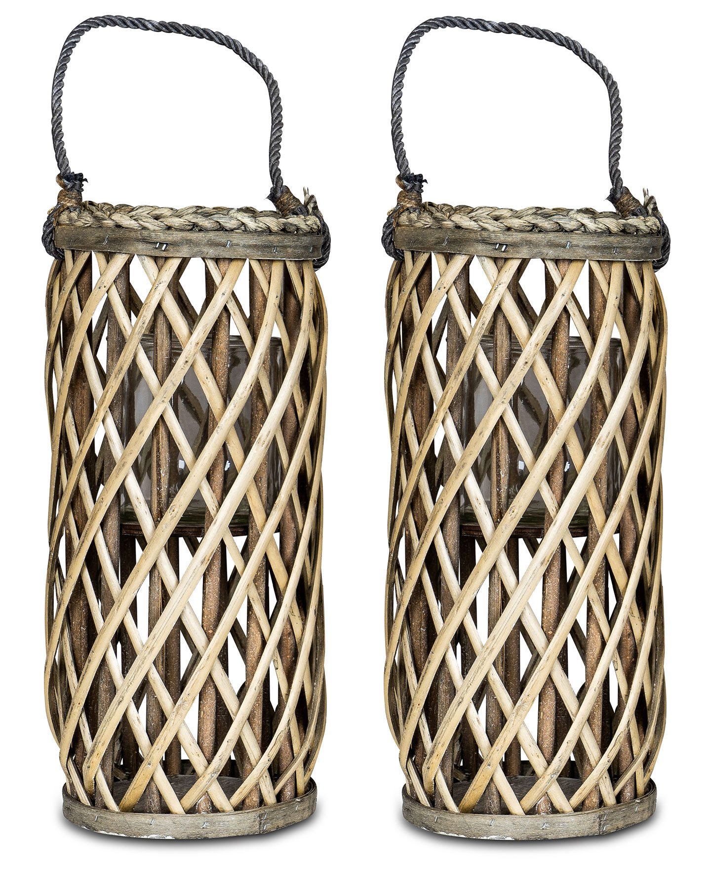 - Размер der Kerzenhalter B/H: 18 x 40 cm und 15 x 31 cm - Размер der Glaseinsätze B/H: 12 x 12 cm und 10 x 10 cm - Material der Tischdeko: Weidengeflecht, Jute-Kordel - Farbe der Windlichter: schwarz - Lieferumgang: 2 Windlichter mit 2 Glaseinsätzen für Kerzen (ohne Kerzen)