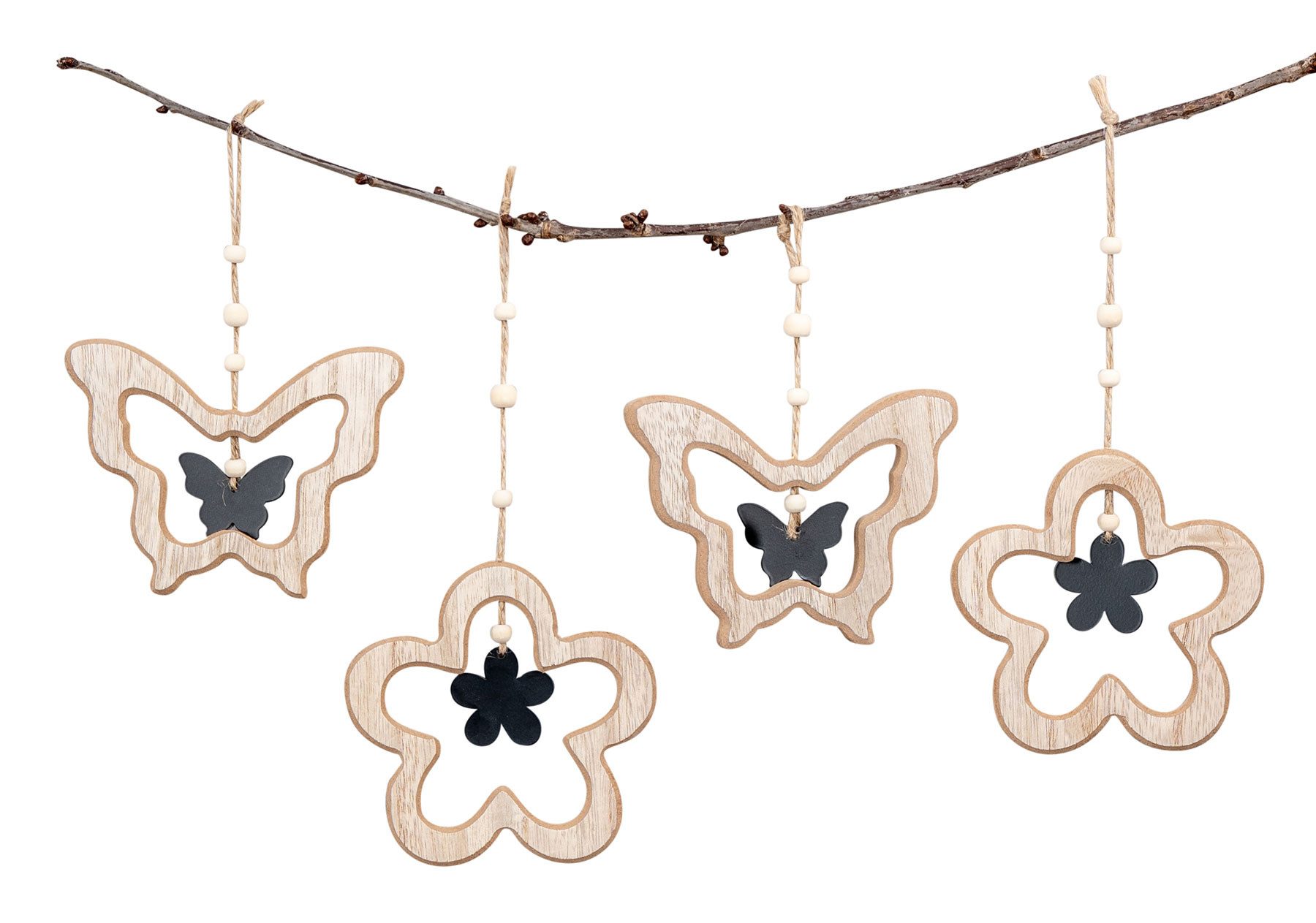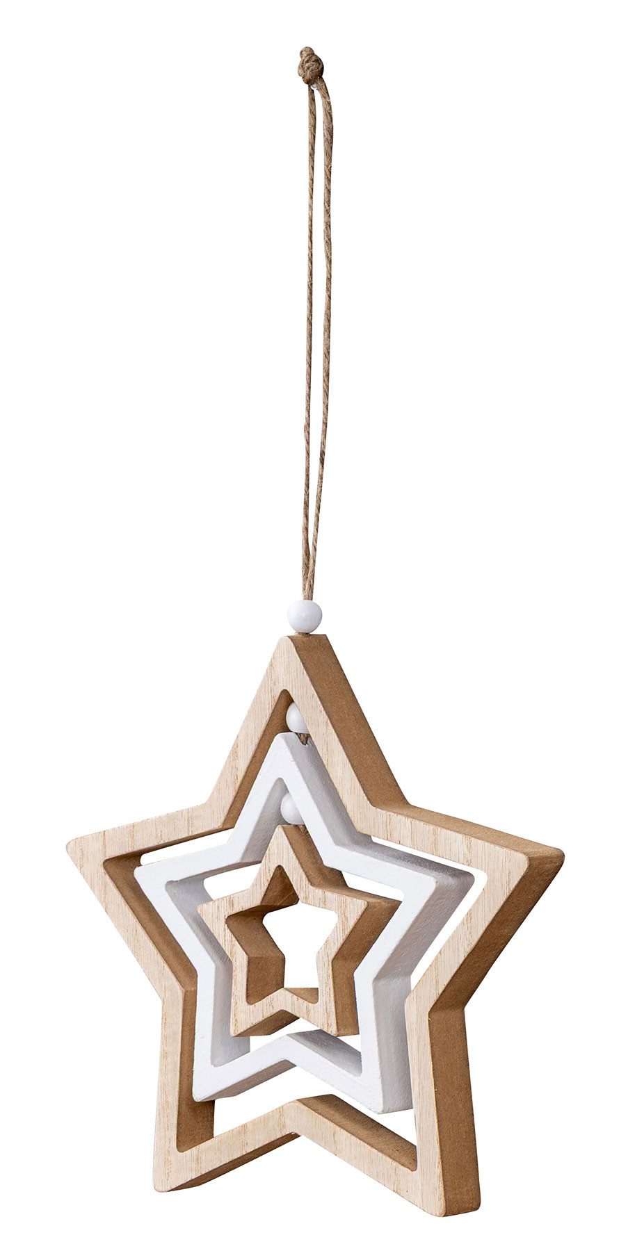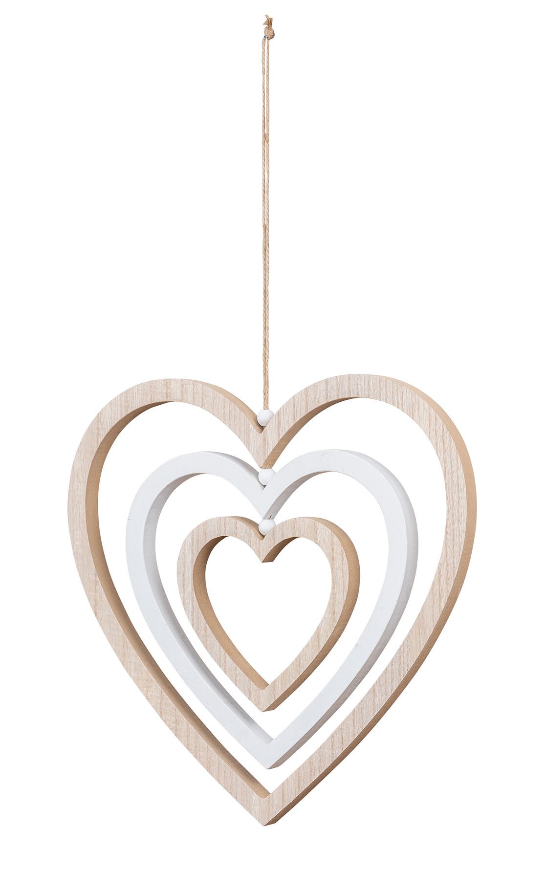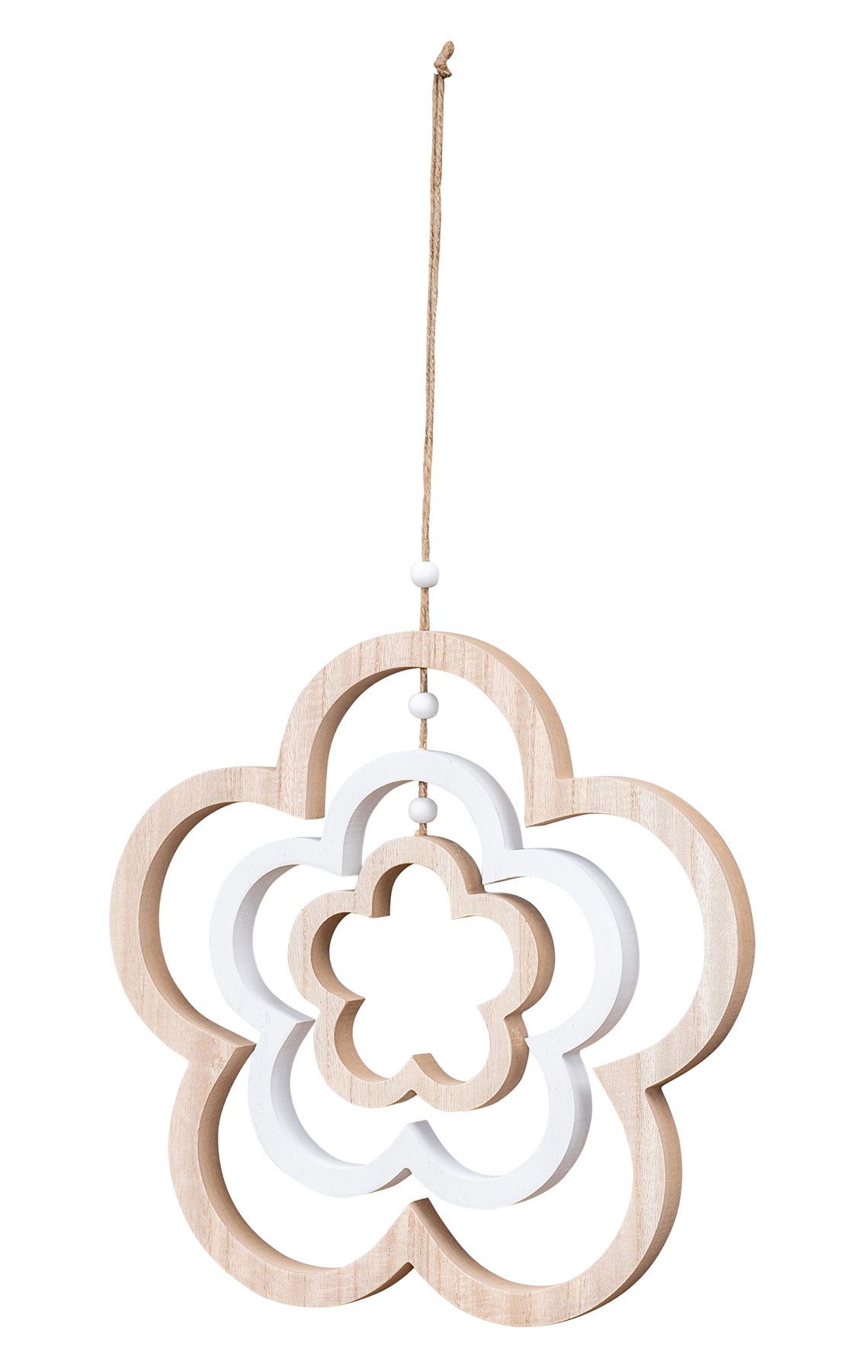 Zeitlos & dekorativ: Der in natürlichen Holz- und weiße Farbtönen gehaltene Deko-Anhänger fügt sich perfekt in sämtliche Einrichtungsstile ein.