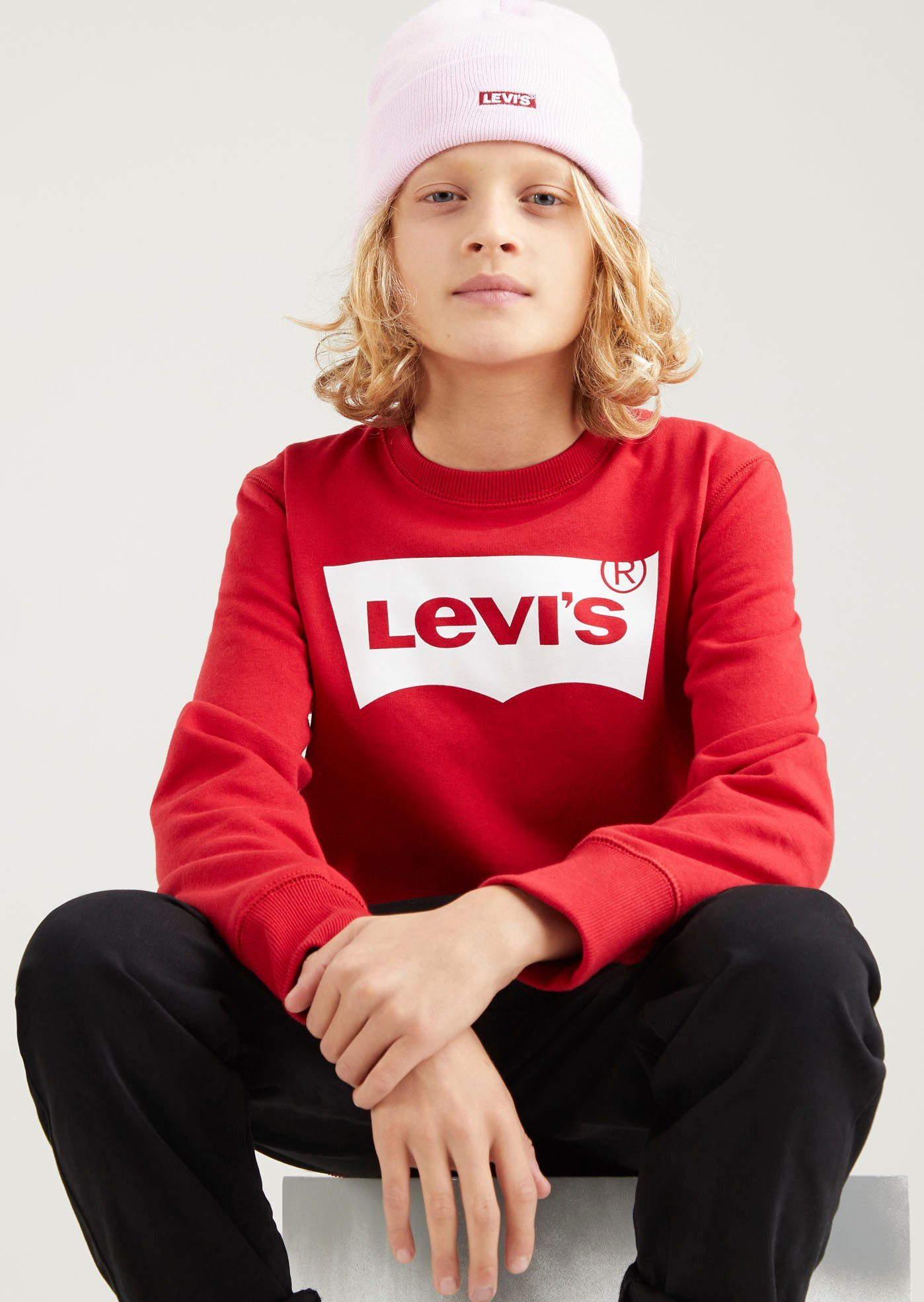 Probieren geht über kopieren: Mit diesem Sweatshirt »LVB LVB FRENCH TERRY BATWING« von Levi's® Kids erfinden Teens ihren eigenen Style. Mit dem Brandlabel innen sieht es cool und auflockernd aus. Die langen Ärmel enden in einem Rippbündchen. Das Sweatshirt hat einen Rundhalsausschnitt mit Rippbündchen und ist normal lang sowie basic geschnitten, sodass die Bewegungsfreiheit nicht leidet.