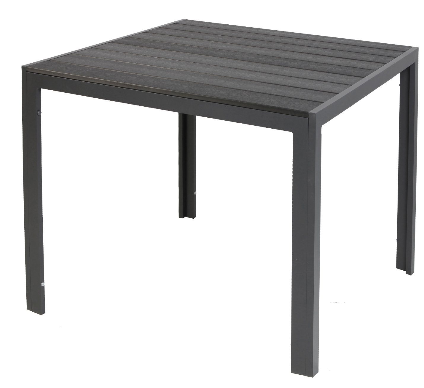 Der Gartentisch ist aus pflegeleichten pulverbeschichteten Aluminium und einer Nonwood Tischplatte in der Farbe Schwarz.