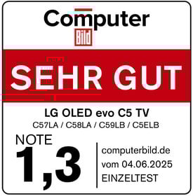 Testurteil von computerbild.de vom 02.08.2025, Ausgabe 04.06.2025, Seite /artikel/avf-Tests-Fernseher-LG-OLED-C5-C58LA-C57LA-preis-review-39564835.html: "SEHR GUT - 1,3"