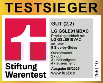 Der Side-by-Side Kühlschrank »GSLE91MBAC« von LG hat eine hohe Funktionalität sowie die Energieeffizienzklasse C (Skala Energieeffizienz-Klassifizierung A bis G) und ist freistehend. Bei einem Gefriervolumen von 221 l und Kühlvolumen von 407 l betragen die Maße des Modells 91,3 x 179 x 73,5 cm (B/H/T). Das Betriebsgeräusch des Modells liegt bei 34 dB. Das Modell verfügt auch über einen Eiswürfelbereiter und über einen Wasserspender. Das Modell besitzt zwei Gefrierschubladen und zwei Gemüseschubladen. Auf vier Ablageflächen aus Sicherheitsglas ist im Side-by-Side Kühlschrank viel Platz für Lebensmittel. Schnell griffbereit sind Lebensmittel in den vier Türablagen. Besonders schnell kühlen und einfrieren lassen sich die Lebensmittel durch die Supergefrier-Funktion. Steht die Tür zu lange offen, gibt der Side-by-Side Kühlschrank ein akustisches Warnsignal. Dank der LED-Innenbeleuchtung findet man ganz problemlos, wonach man sucht. Für diejenigen, die auf der Suche nach einem Side-by-Side Kühlschrank sind, ist der »GSLE91MBAC« von LG eine gute Wahl.