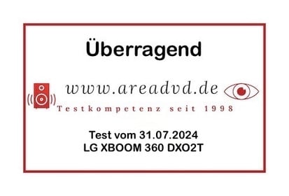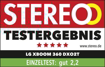 Der LG XBOOM 360 DXO2T Bluetooth-Lautsprecher wurde im Test von Stereo.de als "Gut (2,2)" bewertet.
