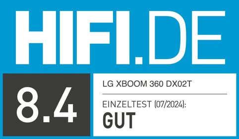 Der LG XBOOM 360 DXO2T Bluetooth-Lautsprecher wurde im Test von Hifi.de als "Gut (8.4)" bewertet.