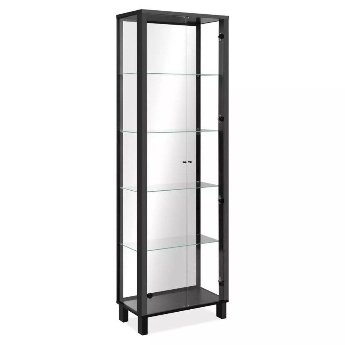 Das geradlinige Design und der schwarze Rahmen der Vitrine Falbi verleihen dem Möbelstück eine moderne und edle Optik. Die Glastüren und Glaswände bieten eine Rundum-Sicht auf Ihre Ausstellungsstücke und ermöglichen einen leichten Zugang zum Innenraum. Gleichzeitig schützt die geschlossene Konstruktion vor Staub und Schmutz, sodass Ihre Gegenstände gut erhalten bleiben.