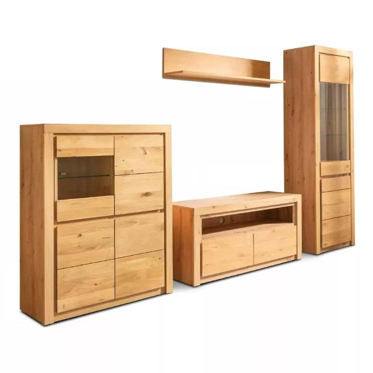 Die 4-teilige Vigo Wohnwand von Liadomo vereint modernes Design mit natürlicher Wärme. Gefertigt aus hochwertiger Eiche-Nachbildung und massiver, gewachster Wildeiche, bringt sie eine harmonische Mischung aus Stil und Funktion in Ihr Wohnzimmer. Diese Kombination bietet nicht nur optische Highlights, sondern auch clevere Stauraumlösungen für Ihre Wohnbedürfnisse.
