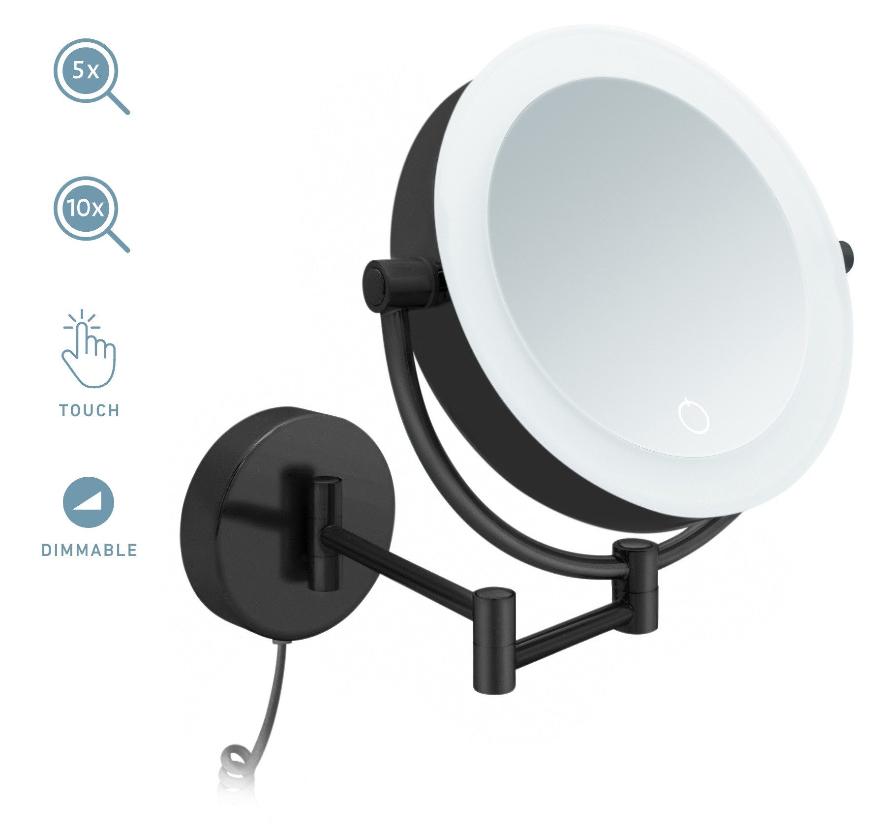 Der Schminkspiegel TOKIO bietet Ihnen zwei Vergrößerungen. Je nach Bedarf können Sie zwischen der 5-fachen und der 10-fachen Vergrößerung auswählen. Die LED Beleuchtung im Inneren erzeugt ein angenehmes Tageslicht, welches durch den umlaufenden Kunststoffrand für eine gleichmäßige Beleuchtung sorgt. Mit Hilfe der Touch-Dimmerfunktion können Sie die gewünschte Helligkeit einstellen. Dies erleichtert die Gesichtspflege - ob Rasur oder Make-up. Und sollten Sie das Ausschalten einmal vergessen, schaltet sich die Beleuchtung dank der Auto-off Funktion automatisch nach 10 Minuten aus.