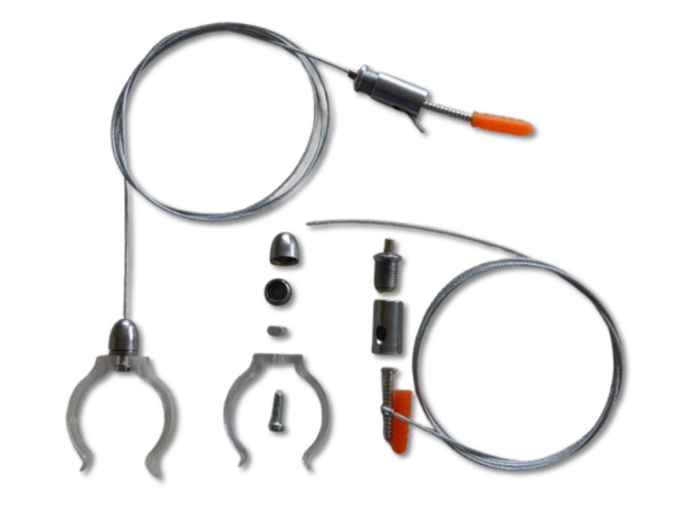 Modellbezeichnung | 9715 Stahlseil Abhängung 2x3 m f. Leuchtstäbe Ø 38 mm 2xklare Klammern |