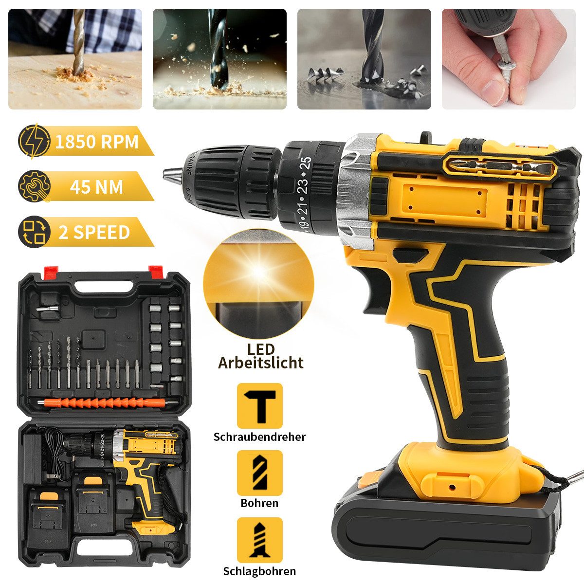 Funktionen | Kann zum Aufdrehen von Schrauben und zum Bohren in Materialien verwendet werden |
