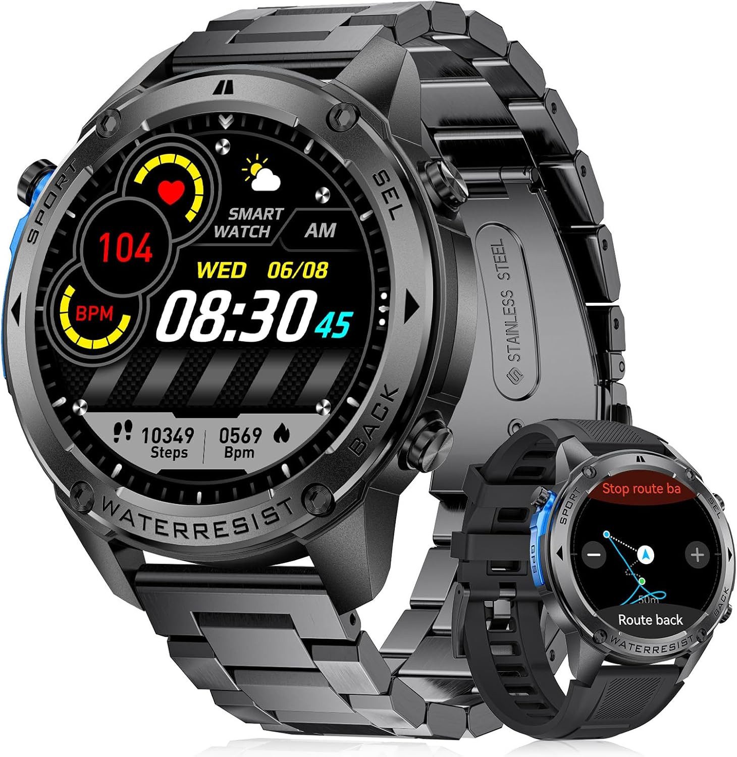 Zusatzfunktionen | Smartwatch mit Dual GPS Herren Outdoor Uhr mit Höhenmesser und Kompass Sport Smartwatch mit 170 Sportmodi Fitnessuhr mit Pulsmessung und SpO2 Smartwatch mit AMOLED Display Taktische Smartwatch mit Luftdrucksensor Smartwatch mit zwei Armbändern Herren Bluetooth Uhr mit Anruffunktion Männer Smartwatch mit Bewegungserinnerung Herren Sportuhr mit Schlafanalyse Outdoor Uhr mit wetterfestem Design Wasserdichte Uhr mit Militärstandard Smartwatch mit Kalorienzähler und Schrittzähler AMOLED Uhr mit langer Akkulaufzeit Smartwatch für Android und iOS kompatibel |