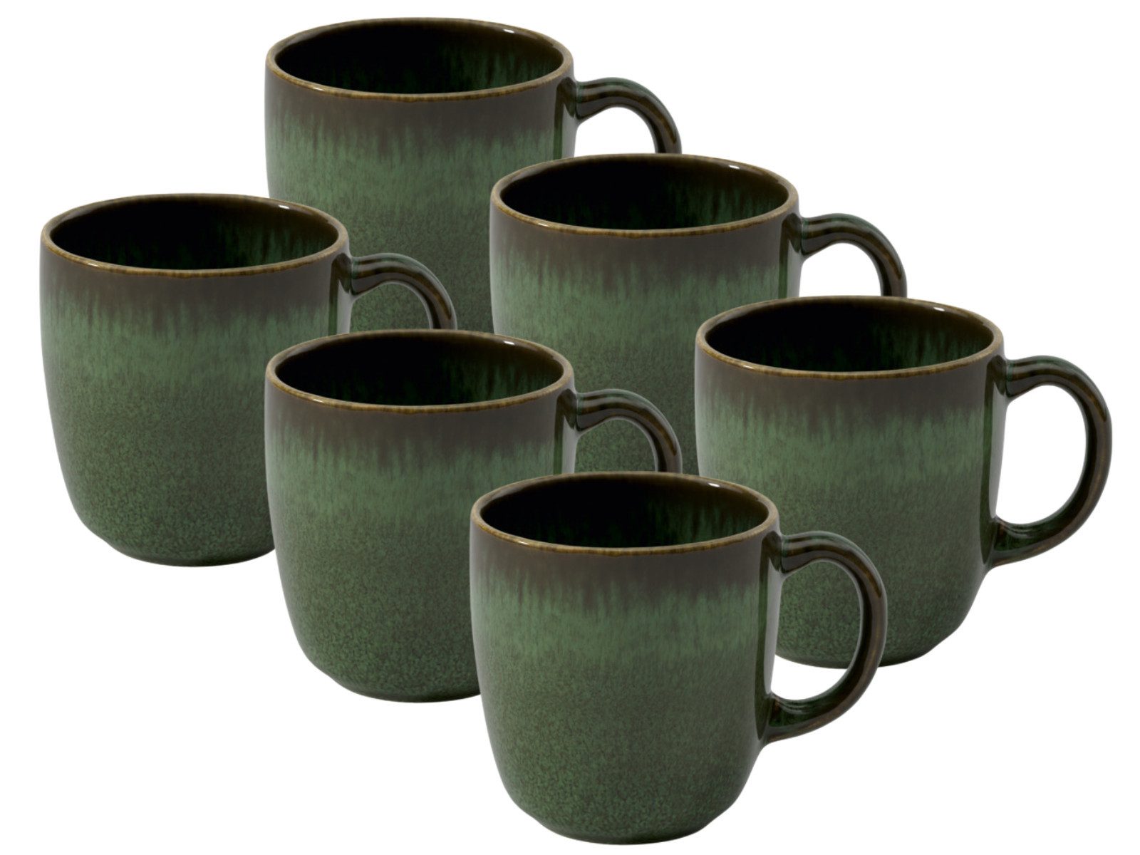 Das Set besteht aus sechs Tassen ohne Untertasse, perfekt für den modernen Alltag oder stilvolle Kaffeepausen. Die organische Form und der individuelle Farbverlauf unterstreichen den natürlichen, trendbewussten Look dieser Kollektion.