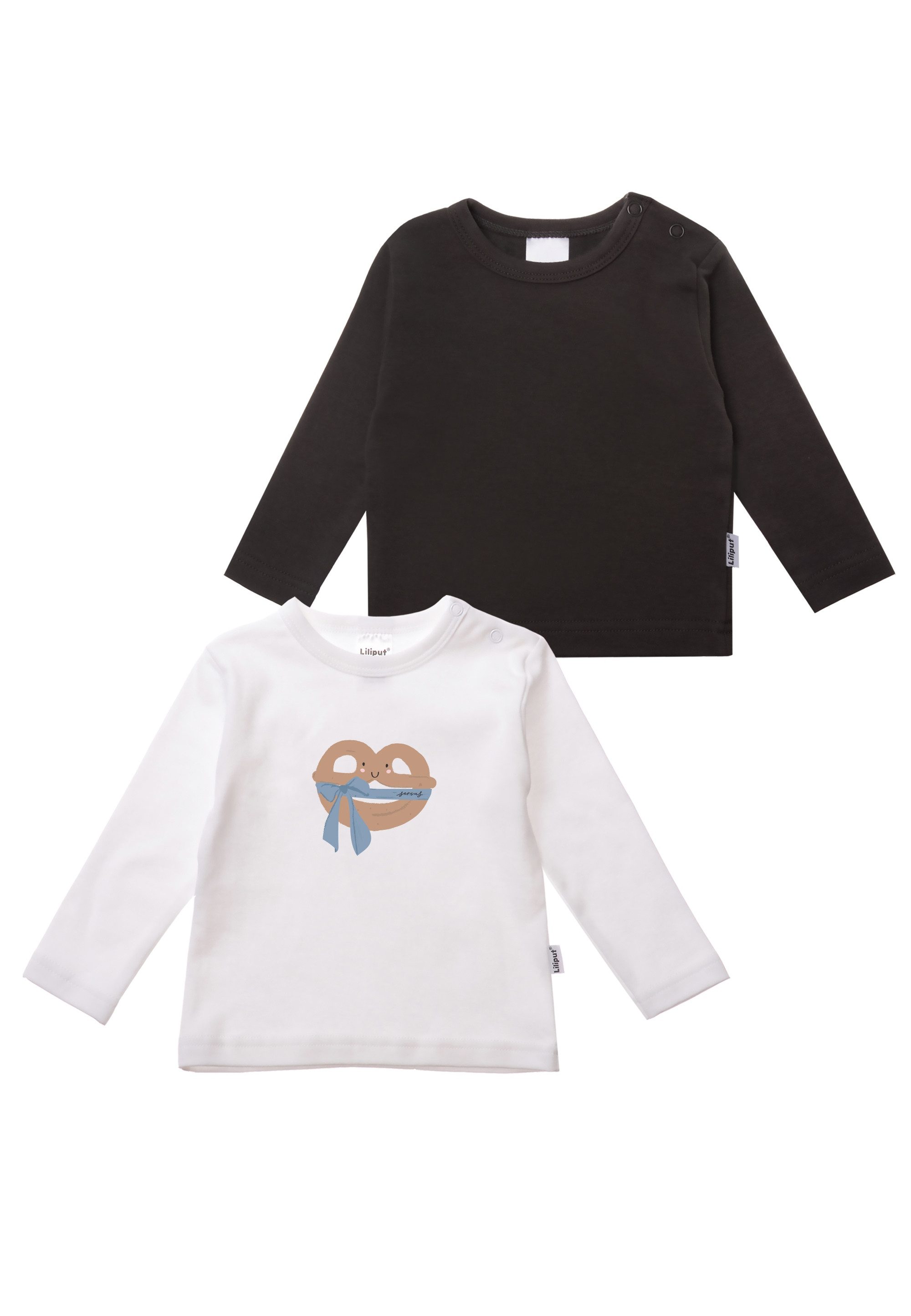 Das Liliput 2er-Set Langarmshirts besteht aus zwei hochwertigen, weichen Shirts, die sowohl Komfort als auch Stil bieten. Es enthält ein klassisches schwarzes Shirt und ein weißes Shirt mit süßem Brezel-Print, ideal für kleine Entdecker. Die praktischen Druckknöpfe an der Schulter erleichtern das An- und Ausziehen. Perfekt für jeden Tag oder als liebevolles Geschenk!