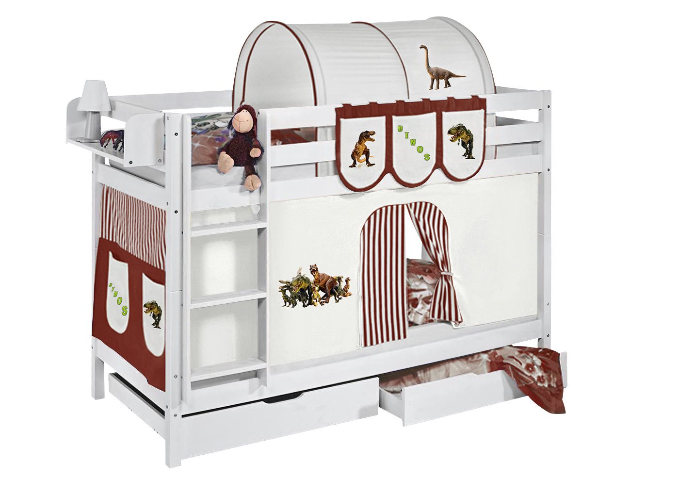 Das zeitlose Etagenbett JELLE der Marke LILOKIDS bietet zwei gemütliche Schlafplätze auf kleiner Fläche und ist die ideale Lösung für Geschwister oder Übernachtungsgäste. Mit seinen klaren Linien, der stabilen Bauweise und dem spielerischen Design ist JELLE nicht nur funktional, sondern auch ein echtes Highlight in jedem Kinderzimmer. Dank der kindgerechten Höhe, der sicheren Leiter sowie der umlaufenden Absturzsicherung schlafen und spielen Kinder hier besonders sicher. Die Pfostenstärke von 5,4 x 5,4 cm sorgt für zusätzliche Stabilität und Langlebigkeit. Sowohl die Leiter als auch der obere Schlafbereich sind so gestaltet, dass sie den hohen Anforderungen an Sicherheit und Komfort gerecht werden – gemäß den geltenden Normen EN 747:2015 für Etagen- und Hochbetten. Ein besonderer Hingucker sind die liebevoll gestalteten Textilien, die das Bett in eine fantastische Spielwelt verwandeln. So wird JELLE tagsüber zur Abenteuerzone und nachts zur Kuschelhöhle. Bitte beachten Sie: Im Lieferumfang enthalten sind das Etagenbettgestell, Lattenroste und die passenden Vorhänge. Zubehör wie Tunnel, Taschen, Hängeregal, Matratzen und Dekoration sind nicht enthalten, können aber bequem in unserem Shop dazu bestellt werden. LILOKIDS – Für kleine Träumer und große Abenteuer!