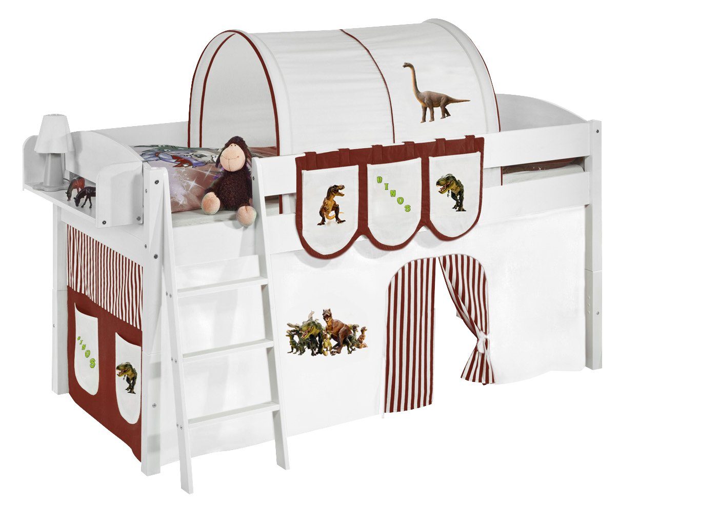 Mitwachsendes Systembett zum Spielen, Schlafen und Träumen. Dieses halbhohe, zeitlose Spielbett IDA der Marke LILOKIDS ist der Liebling aller Kinder und Eltern. Mit wenigen, einfachen Handgriffen kann das Bett aus Kiefer Massivholz in ein Einzelbett oder mit einem zusätzlich erhältlichen Umbausatz in ein Hochbett oder L-Etagenbett umgebaut werden. Dadurch ist das Bett auch später noch als Jugendbett verwendbar. Durch die Vorhänge lädt unser Systembett IDA nicht nur zum Träumen, sondern auch zum Spielen ein und weckt die Fantasie Ihres Kindes. Damit das Spielbett in jedem Kinderzimmer Platz findet, lässt sich die Leiter beidseitig montieren. Der Vorhang ist inklusive. Bitte beachten Sie, dass unsere weiteren Accessoires wie Tunnel, Taschen, Hängeregal, Lattenrost, Matratze und Dekoration nicht im Lieferumfang enthalten sind. Dieses Zubehör können Sie separat hier im Shop hinzubestellen. Bei Kindermöbeln sollten Sie besonders auf die Sicherheit Ihres Kindes achten. Die Absturzsicherung sowie die Pfostenstärke von 5,4 x 5,4 cm machen IDA zu einer kindersicheren Sache. Wir gewähren für alle LILOKIDS-Betten eine robuste Konstruktion und gute Verarbeitung gemäß den Normen EN 747:2015 für Kinderhoch- und Etagenbetten.