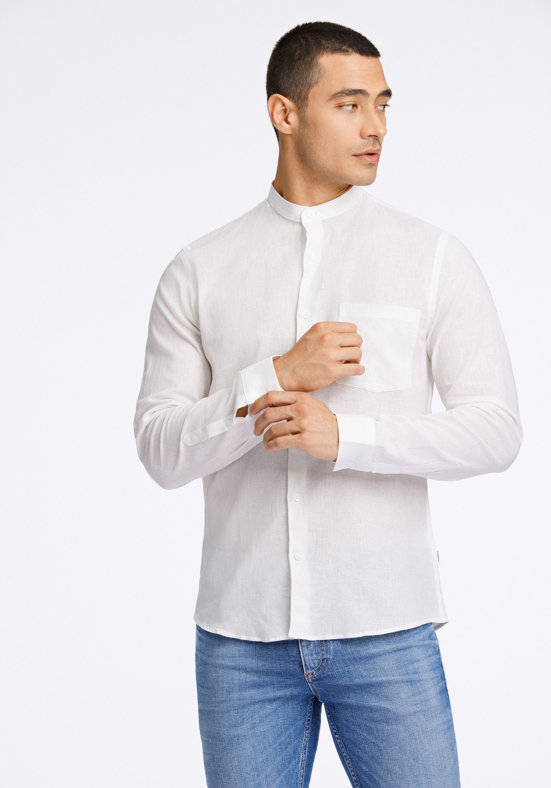 Gesucht und gefunden: Schau dir das Leinenhemd von LINDBERGH mal genauer an. Der Stehkragen wird nicht umgeschlagen, liegt am Hals an und ist eine Grundlage für Freizeit-Outfits. Die langen Ärmel enden in einer geknöpften Manschette. Dieses Hemd hat einen Rundhalsausschnitt und ist normal sowie schmal geschnitten, sodass es deinen Oberkörper betont.