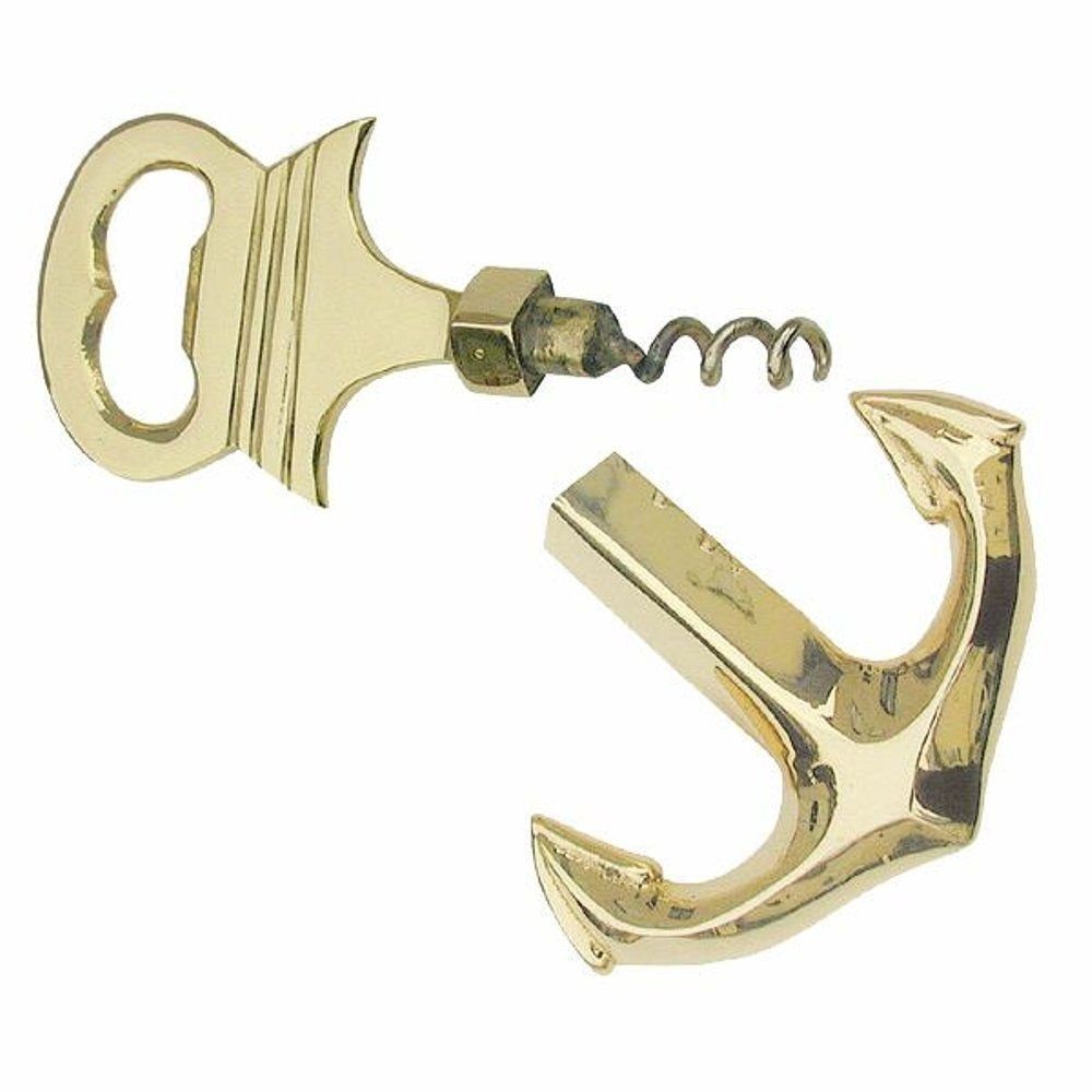 Maritimer Flaschenöffner und Korkenzieher, Barbesteck als Anker aus poliertem Messing 15 cm. Das Barbesteck besteht aus zwei Teilen und wird nach der Arbeit ineinander gesteckt. Dieser Artikel gehört zu unseren zahlreichen Angeboten aus dem Bereich der nützlichen maritimen Dekoration.