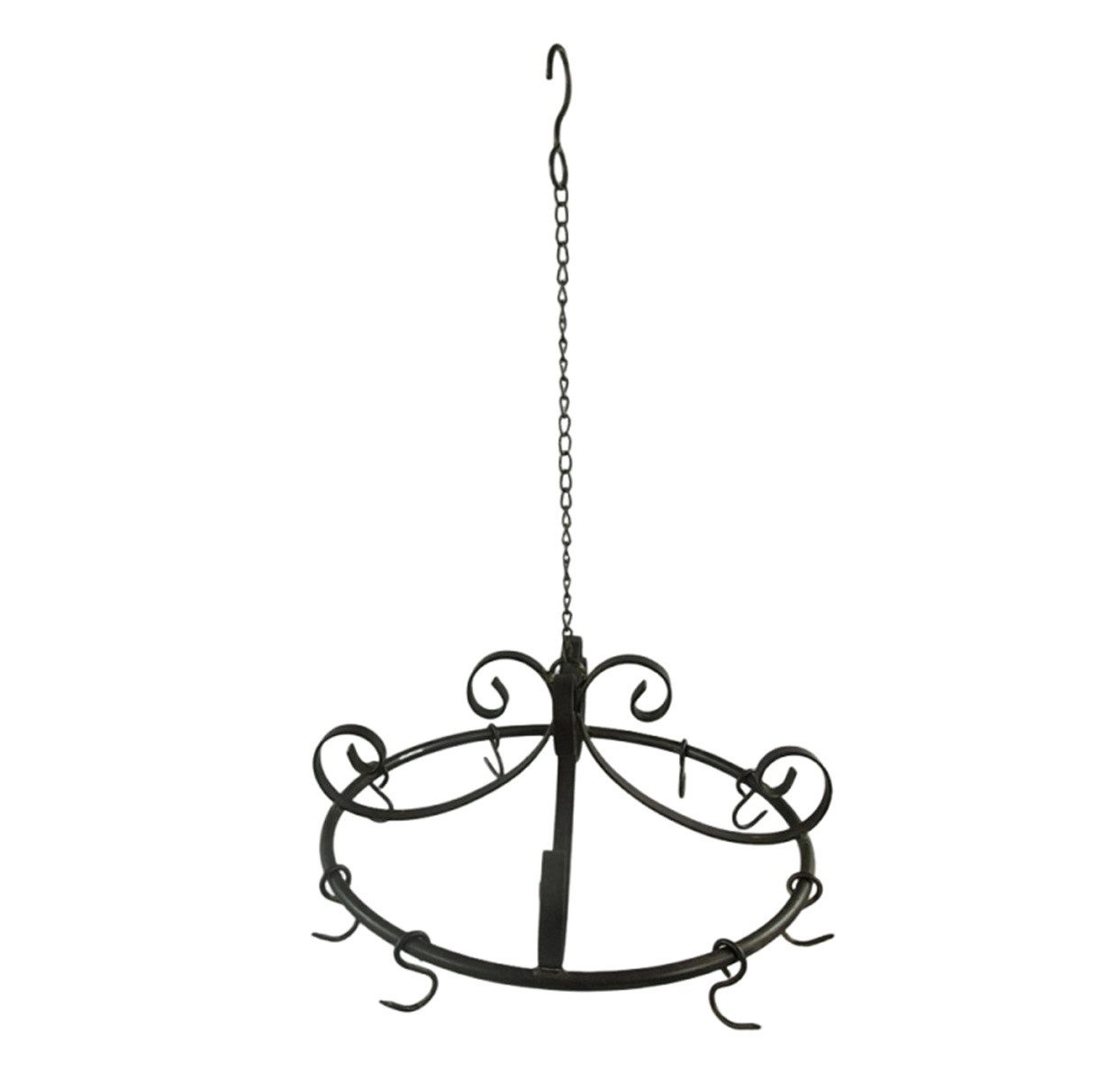 Runde Nostalgie Küchenkrone, Topfkrone, Wildkrone, Wurstkrone aus Eisen im Landhausstil in Antik Schwarzbraun. Küchen Hängekrone für allerlei nützliche Küchenhelfer und Lebensmittel. Über dem Herd oder dem Vorbereitungstisch angebracht brauchen Sie nicht mehr lange nach Küchenutensilien suchen. Kochlöffel, Topflappen, Würste, Speck und Kräuter sind nun jederzeit griffbereit. Die 8 Eisenhaken können individuell verschoben werden.