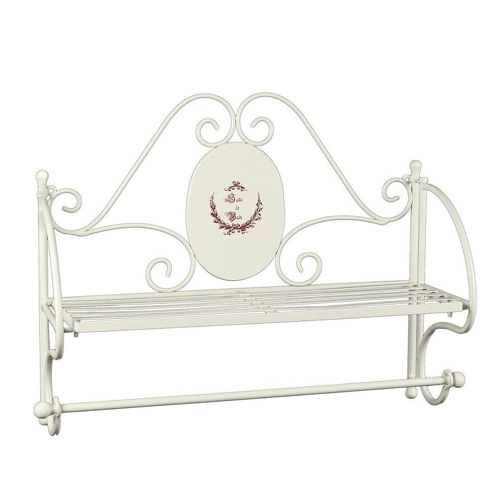 Französischer Handtuchhalter, Retro Badezimmer Regal mit Handtuch Stange im Landhausstil in rustikalem Weiß. Der Handtuchhalter ist aus Eisen und wird an die Wand montiert, er trägt die Aufschrift Salle de Bain. Der Handtuchhalter wird an die Wand montiert (Befestigungsmaterial wird nicht mitgeliefert)