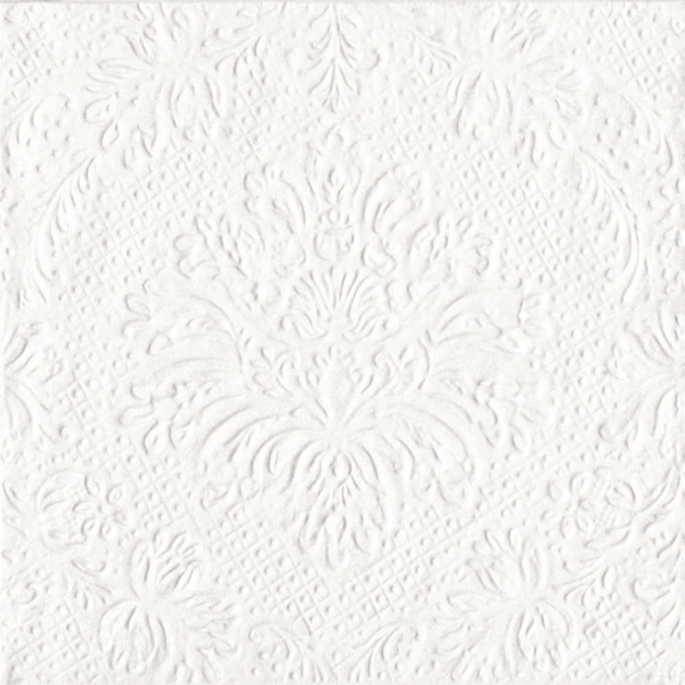 20 Servietten, fein geprägtes florales Barock Muster in Perlweiß, 20 Papierservietten aus Tissue-Papier 33 x 33 cm.