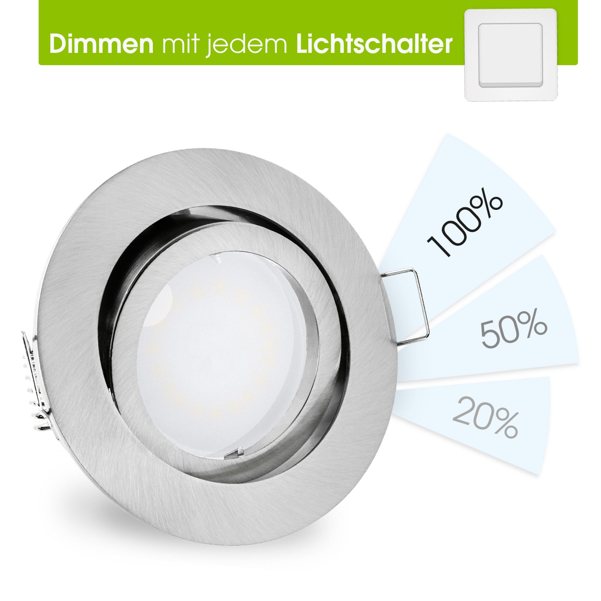 Lieferumfang | Einbaurahmen rund Alu schwenkbarLED Lampe fourSTEP GU10 5W neutralweißGU10 Fassung mit Anschlusskabel |