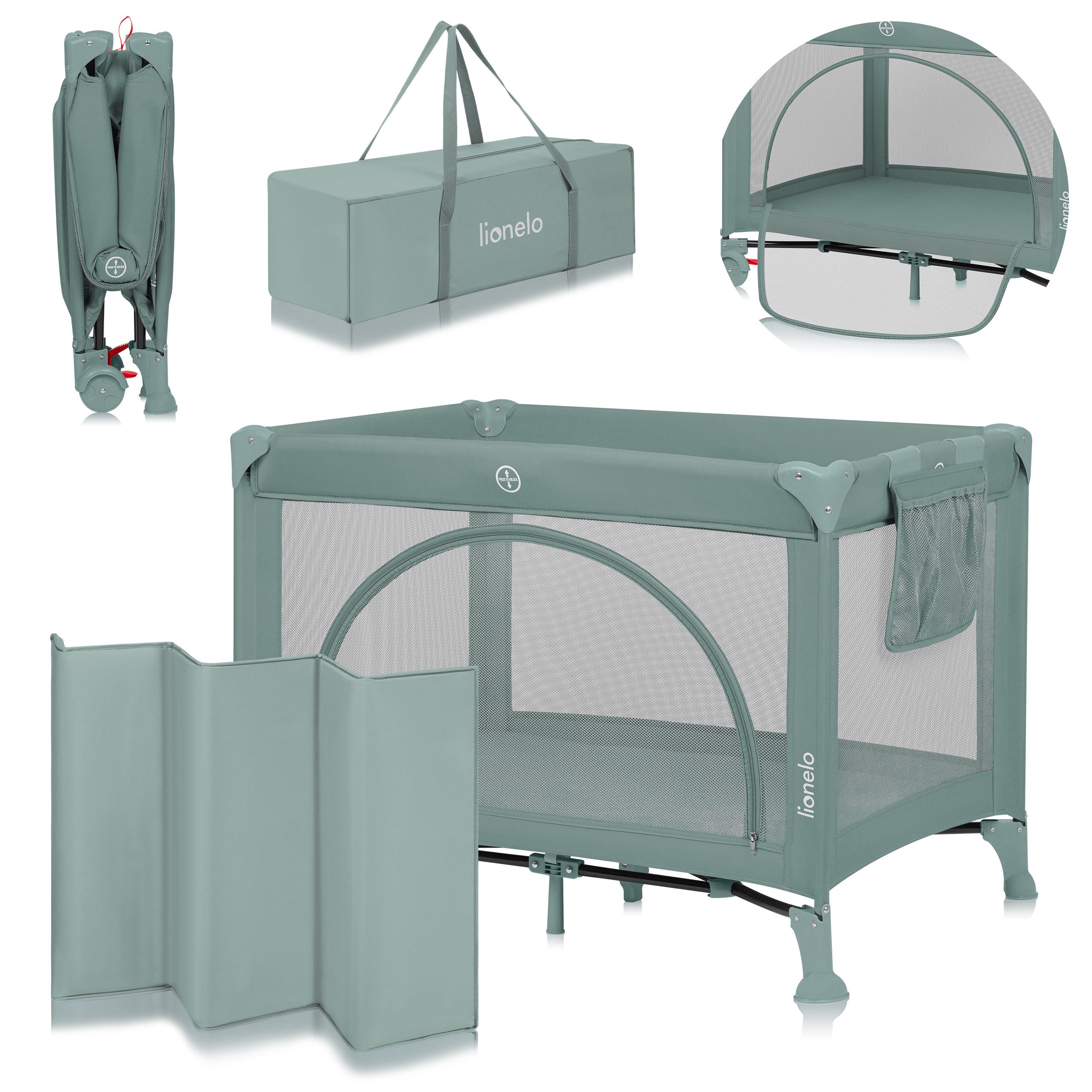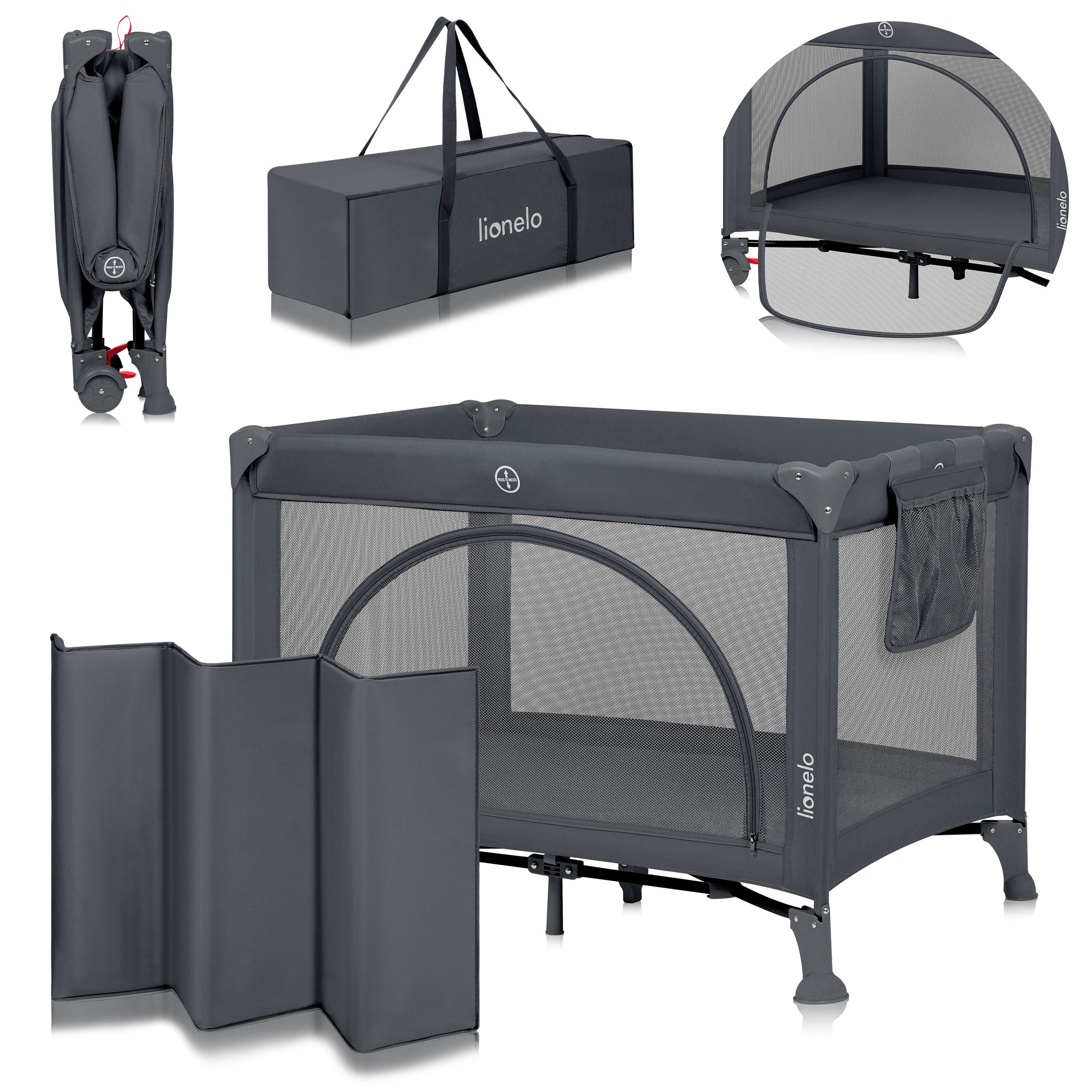 Lionelo Laura ist ein kompaktes Reisebett mit Laufgitterfunktion, entworfen und entwickelt für kleinere Räume und engere Wohnungen.