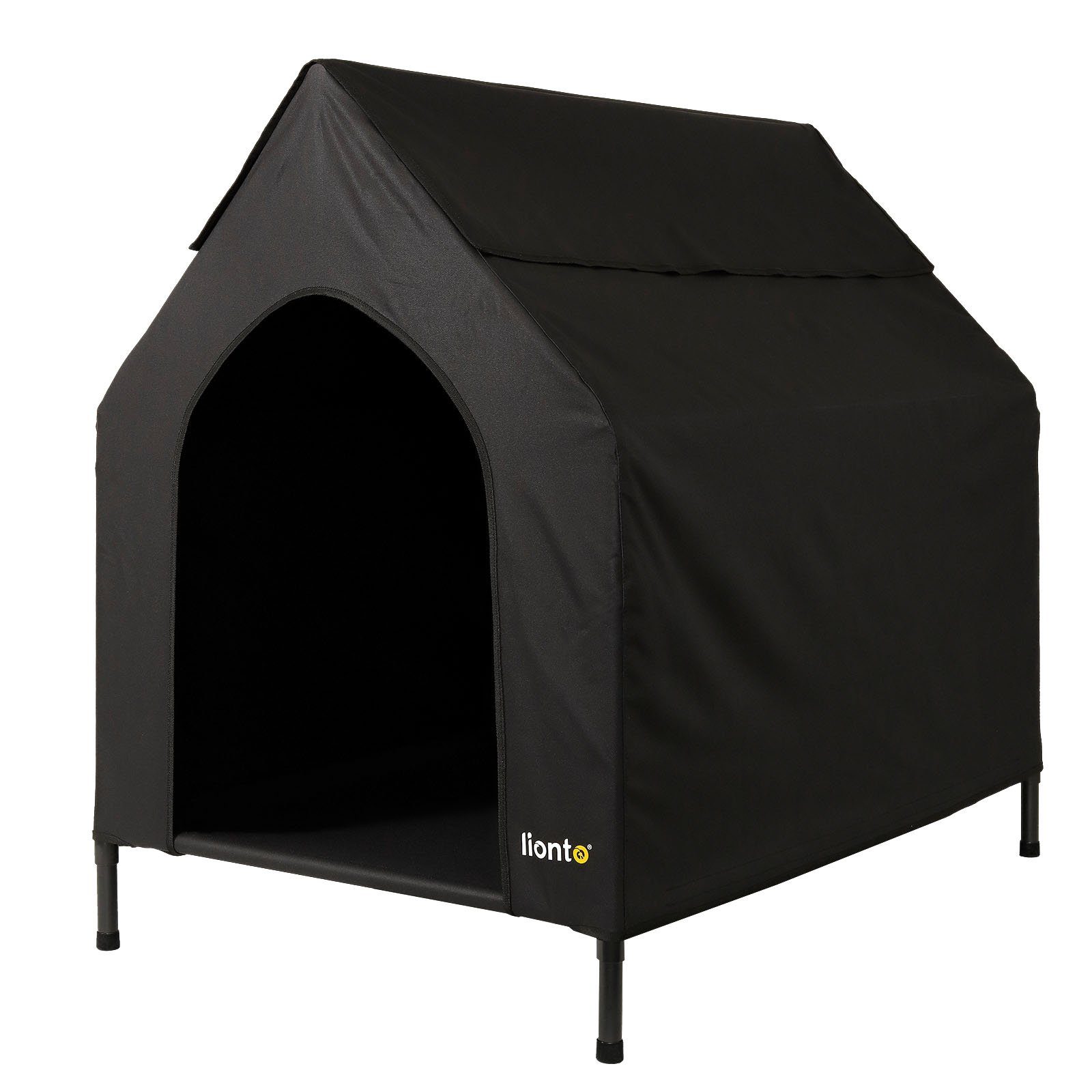 Mit der überdachten Hundeliege von lionto können Sie Ihrem Vierbeiner einen geschützten Rückzugsort für die Innen- und Außennutzung bieten. Die erhöhte Hundehütte sorgt für einen komfortablen Liegeplatz, der Ihr Tier vor Nässe, Schmutz und Ungeziefer schützt. Die Öffnung des erhöhten Hundebettes ist extra groß gehalten, damit dem Tier der Einstieg erleichtert wird. Durch das Dach wird der Hund vor direkter Sonne und Regen geschützt. Im aufgerollten Zustand kommt das integrierte Netzgewebe im Dach zum Vorschein, welches eine optimale Luftzirkulation garantiert. Der Hundeplatz ist dank des Materials aus wasserabweisendem Oxford-Gewebe leicht zu reinigen und sehr robust. Plastikfüße schützen das Gestell der Tierliege gegen Nässe und innen gegen das Verkratzen des Bodens.