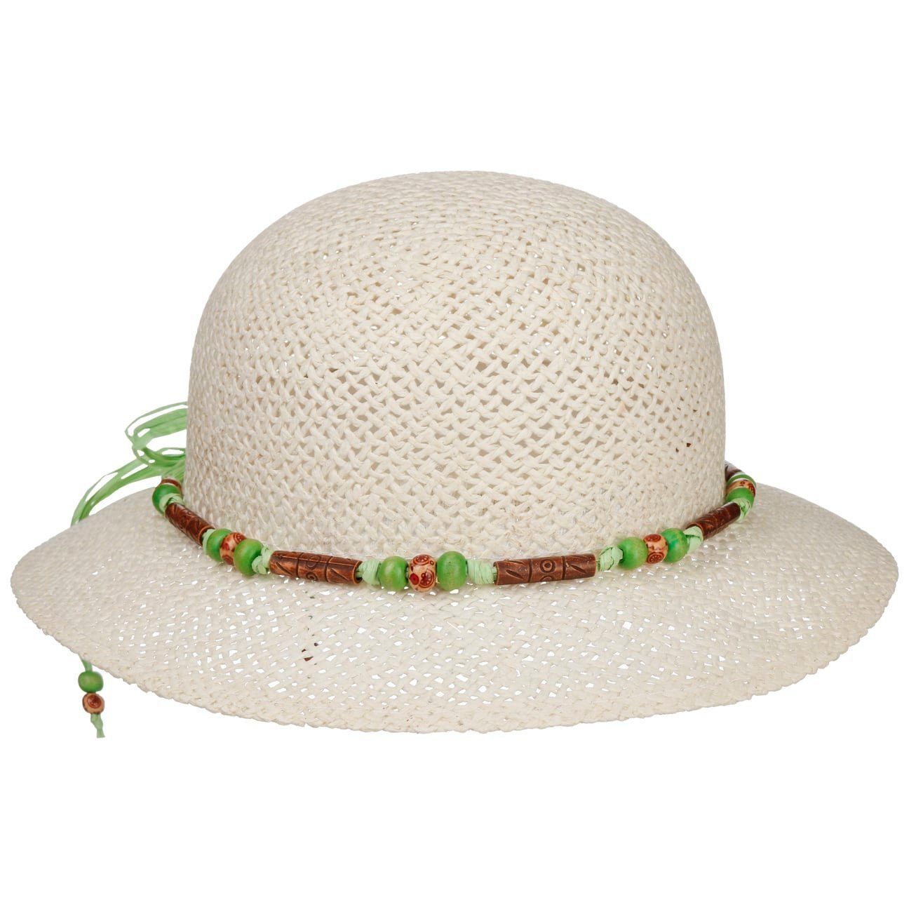 Verspieltes Design mit Perlen. Dieser einfarbige Strohhut von Lipodo ist eine leichte Kopfbedeckung für Kinder. Er ist aus 100% Stroh geflochten und ein entzückendes Accessoire zu Sommerkleidchen oder Shorts. Mit seinem weitmaschigen Geflecht sieht der Kinderhut hübsch aus und sorgt an heißen Sommertagen für Luftzirkulation am Kopf. Um die runde Krone ist eine Kette mit Perlen in naturnahen Farben gelegt. Made in Italy.